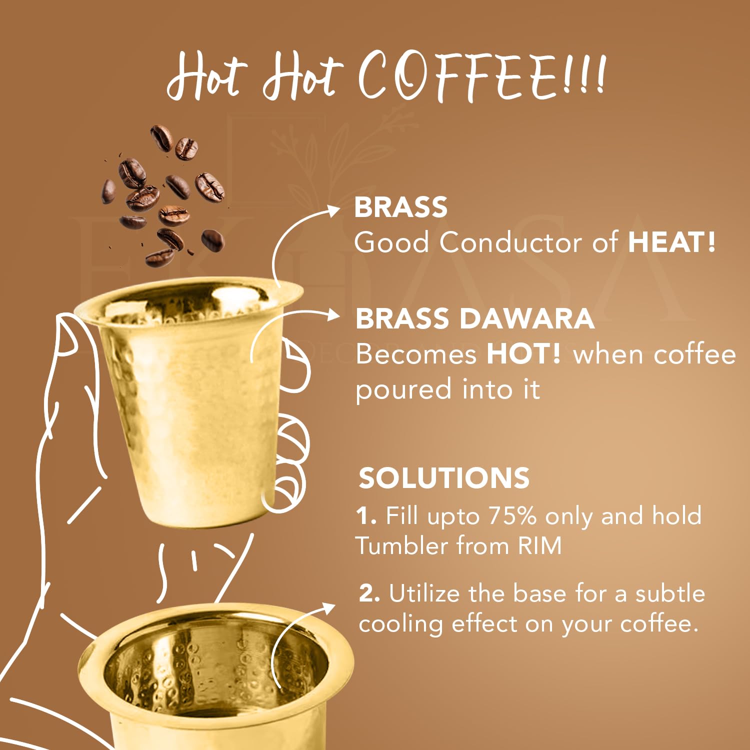 Ekhasa 100% Pure Brass Filter Coffee Cup | Hammered Dabara Set for Coffee | South Indian Dawara Coffee Cup Set | Pital Filter Coffee Cup Tumbler Set (Set of 4)