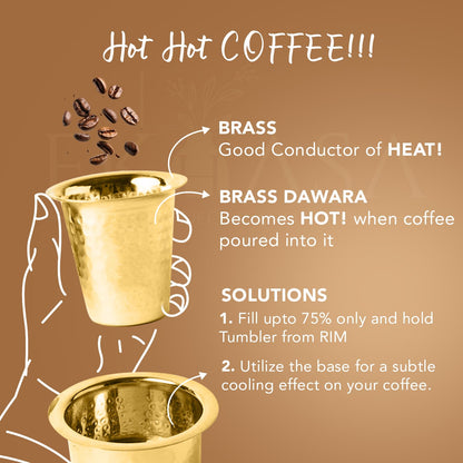 100% Pure Brass Filter Coffee Cup | Hammered Dabara Set for Coffee | South Indian Dawara Coffee Cup Set | Pital Filter Coffee Cup Tumbler Set (Set of 4)