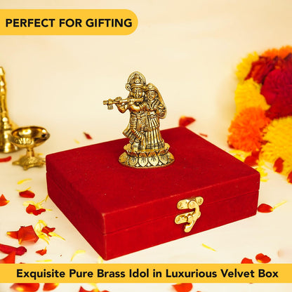 Radha Krishna Gift Box: Decorative Brass Idol for Gifting | Standard | Gold