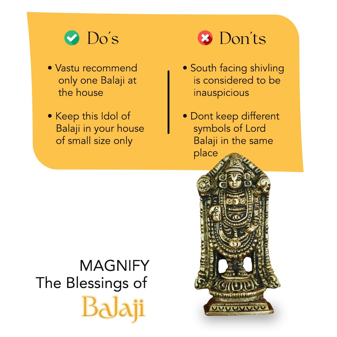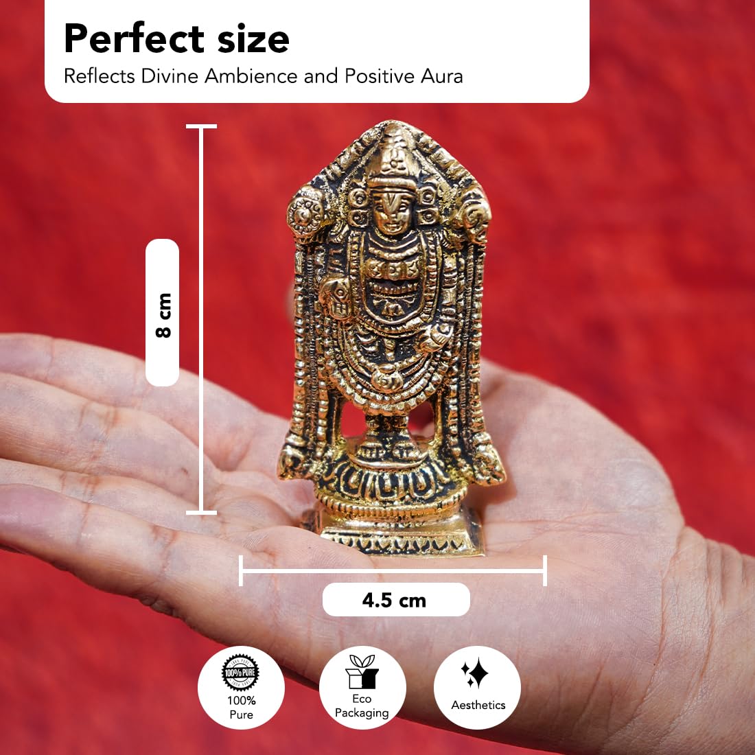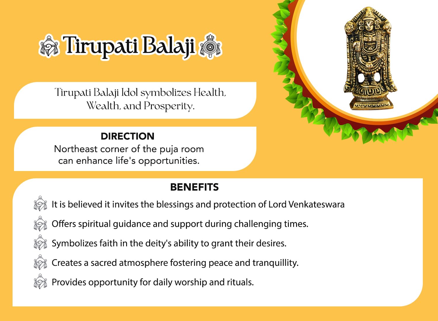 • BRINGS SUCCESS AT WORK: The Tirupati Balaji Idol not only fills your space with positive vibes but also invites success and prosperity into your professional endeavors.