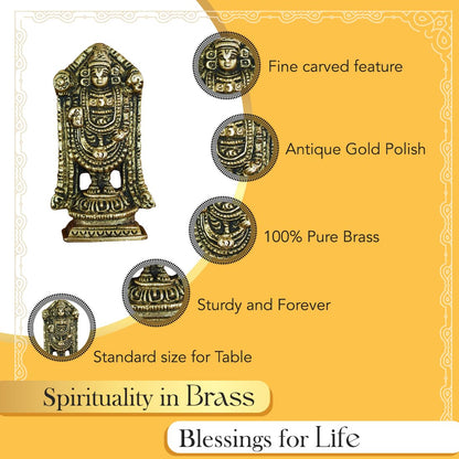 Ekhasa 100% Pure Brass Tirupati Balaji Idol (Size: 8.0 cm) | Lord Venkateswara Idol for Car Dashboard, Pooja Room, Home Décor and Office Desk | Tirupati Balaji Murti | Perumal Statue