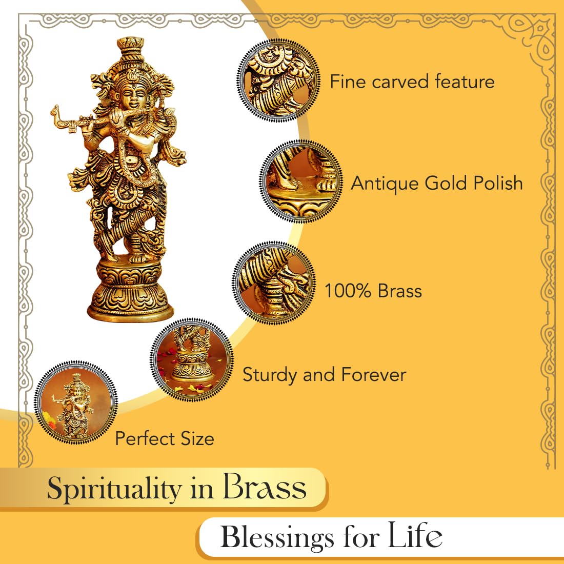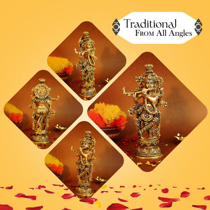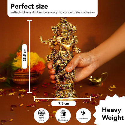 100% Pure Brass Heavy Weight Big Size Lord Krishna Idol with Flute (2Kg) | Shree Lord Krishna Statue for Home Decor | Sri Krishna Idols Gift for House Warming Ceremony or Office Desk