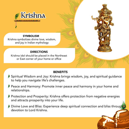 • AUSPICIOUS LORD KRISHNA IDOL: This statue with a flute enhances harmony and prosperity in your life, bringing good fortune.