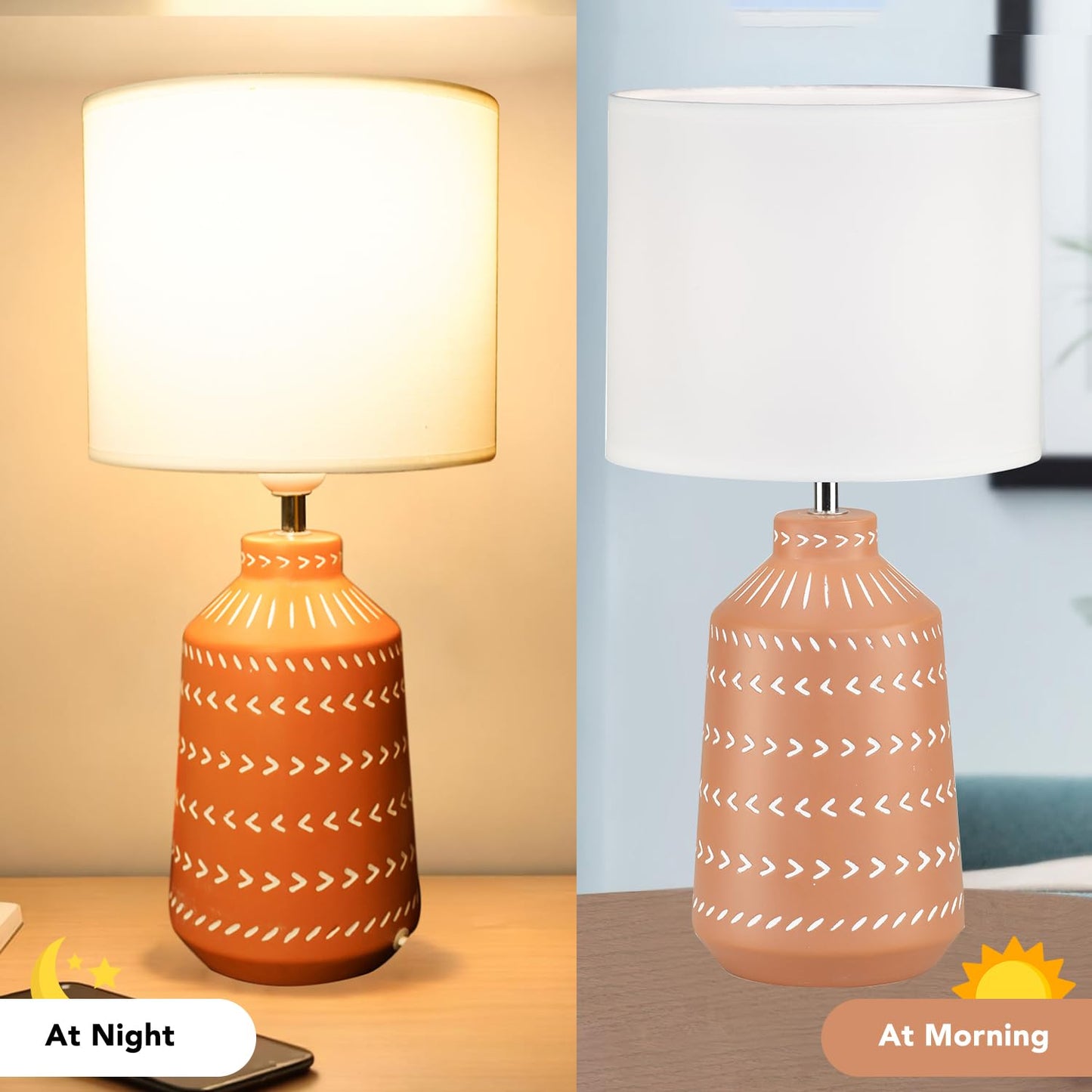 Ceramic Side Table Lamp for Bedroom | Bedside Night Lamps | Decorative Aesthetic Table Lamp for Living Room & Home Decoration | Cute Small Beautiful Bed Side Reading Light Lamp for Room