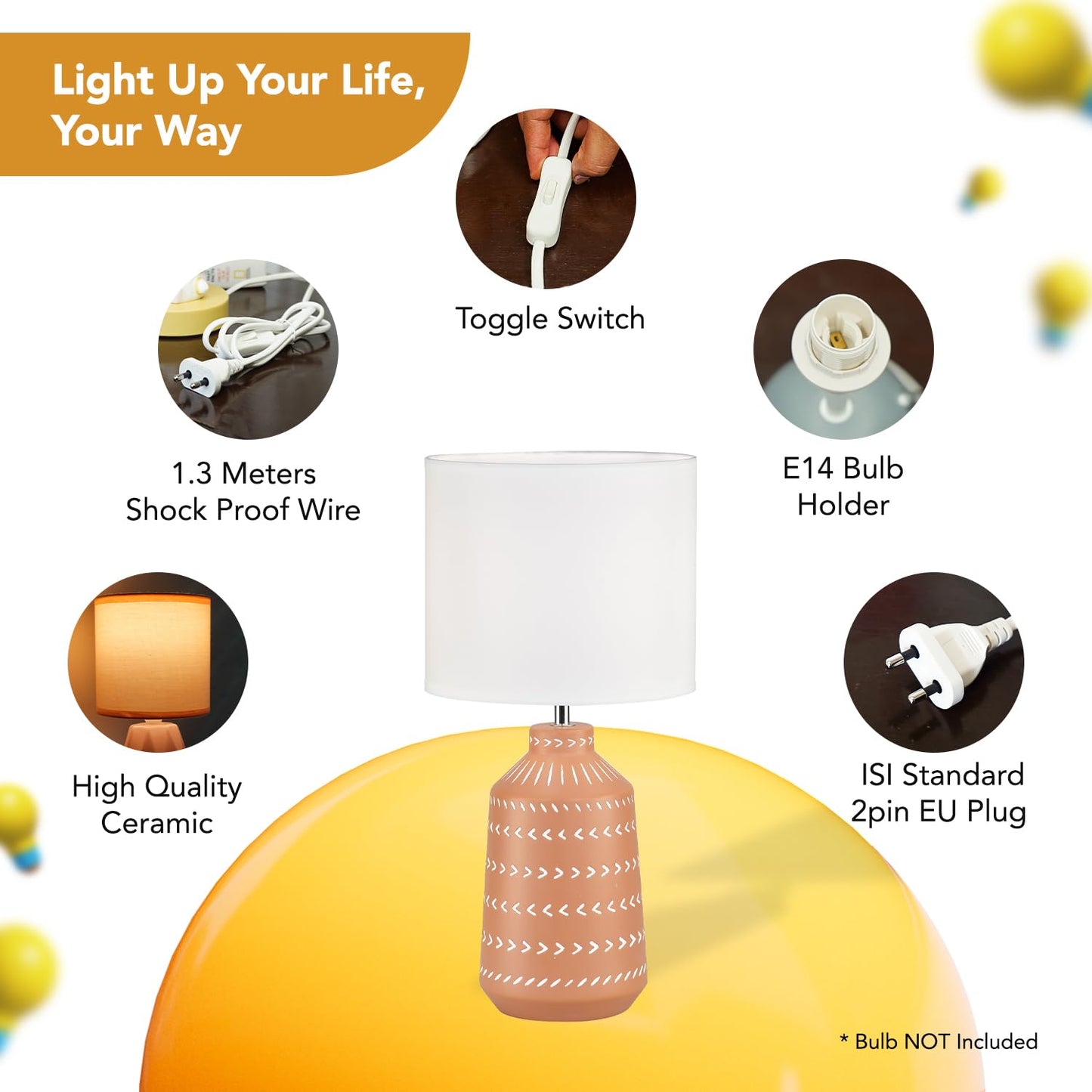 Transform your living environment with the Ekhasa Ceramic Side Table Lamp, designed to bring both functionality and aesthetic appeal to any room. This adorable small lamp is the perfect addition to your bedside, study, or living areas, offering versatility and charm.