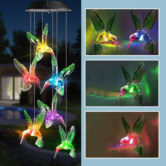 Solar Hummingbird Wind Chimes | Solar Powered Windchime for Balcony, Outdoor & Garden Magical Solar Power Positive Vibes WindChimes Lights (Light Colour Changes, No Sound)