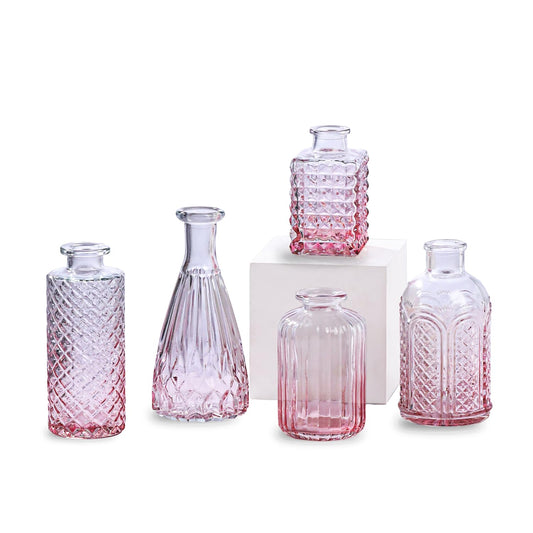 Set of 5: Clear Glass Bud Vases - Decorative & Elegant | Modern | For Home