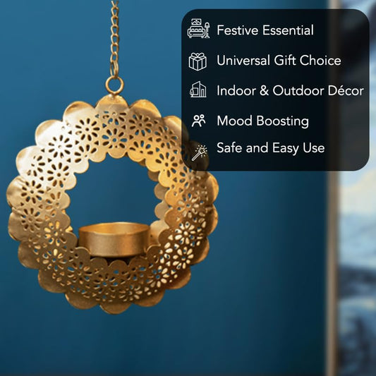 Hanging Tealight Candle Holder for Home Decor | Perfect Candle Holder for Diwali Decoration and Wall Hanging Decor | Indoor & Outdoor, Festival Decorative Candles Gift Items (Set of 2)