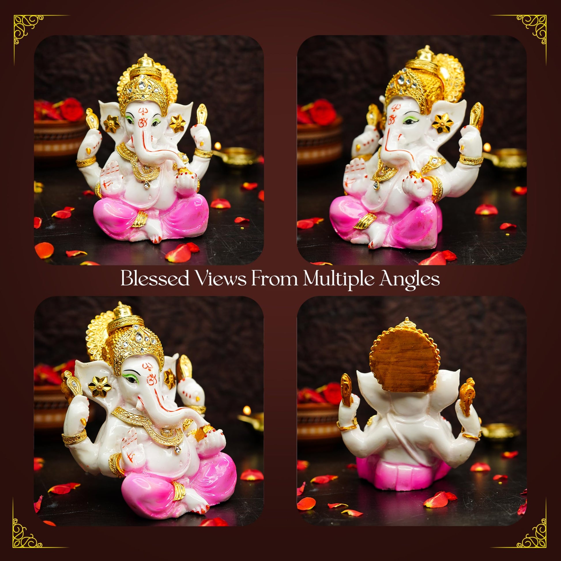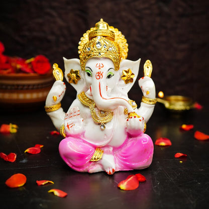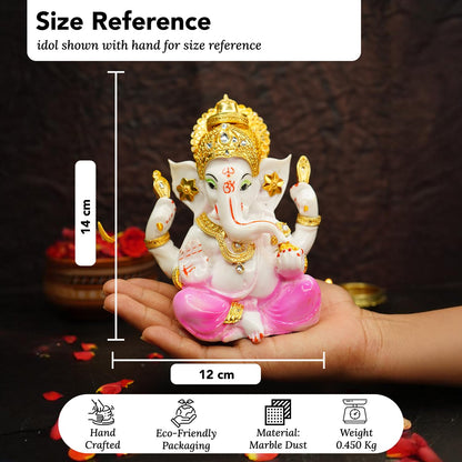Introducing the Ekhasa Handpainted Ganesha Idol. This enchanting 5 inch idol, made from marble dust, enhances your space with a vibrant and colorful design, perfect for spiritual and decorative purposes. The elegance of this Ganesh murti makes it suitable for your Pooja Room, home decor, and even your office desk.