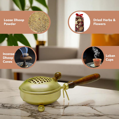 Ekhasa Metal Dhoop Dani Loban Burner Holder Stand for Home | Dhup Kapoor Dani for Puja with Wooden Holder | Sambrani Holder | Dhuni Burner Samrani Batti Stand for Pooja | Dhup Stand Incense Oud Burner
