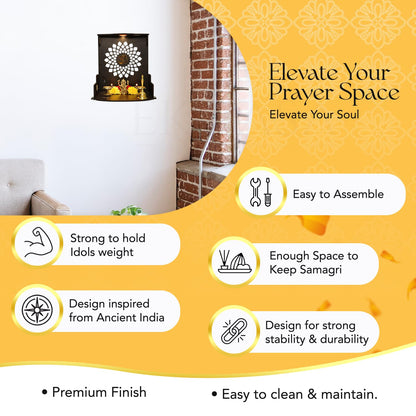 • Sacred Elegance: This wall-mounted pooja mandir brings a touch of grace to your environment, radiating positive vibes that inspire peace and devotion.