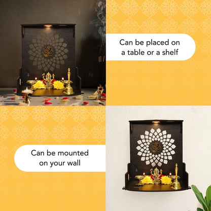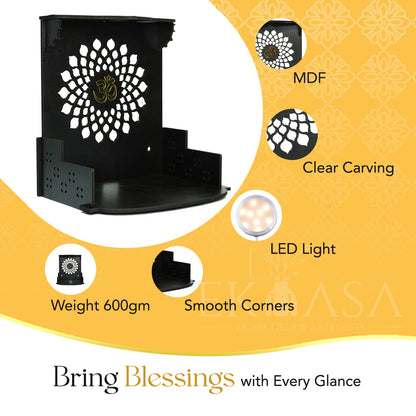 • Integrated LED Lighting: Equipped with a sophisticated 2 Watt LED spotlight, this pooja stand ensures your rituals are illuminated beautifully. No additional converters or drivers are required, making installation effortless.