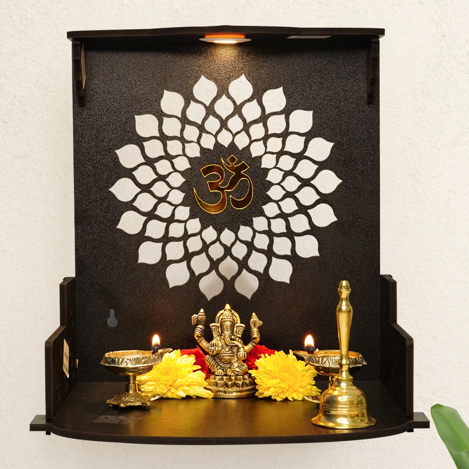 Ekhasa Wooden Pooja Mandir for Home Wall Mounted | Wooden God Temple for Home | Pooja Stand for Home | Puja Mandir for Home | Pooja Unit for Home with LED Spotlight | Temple for Office