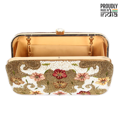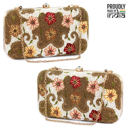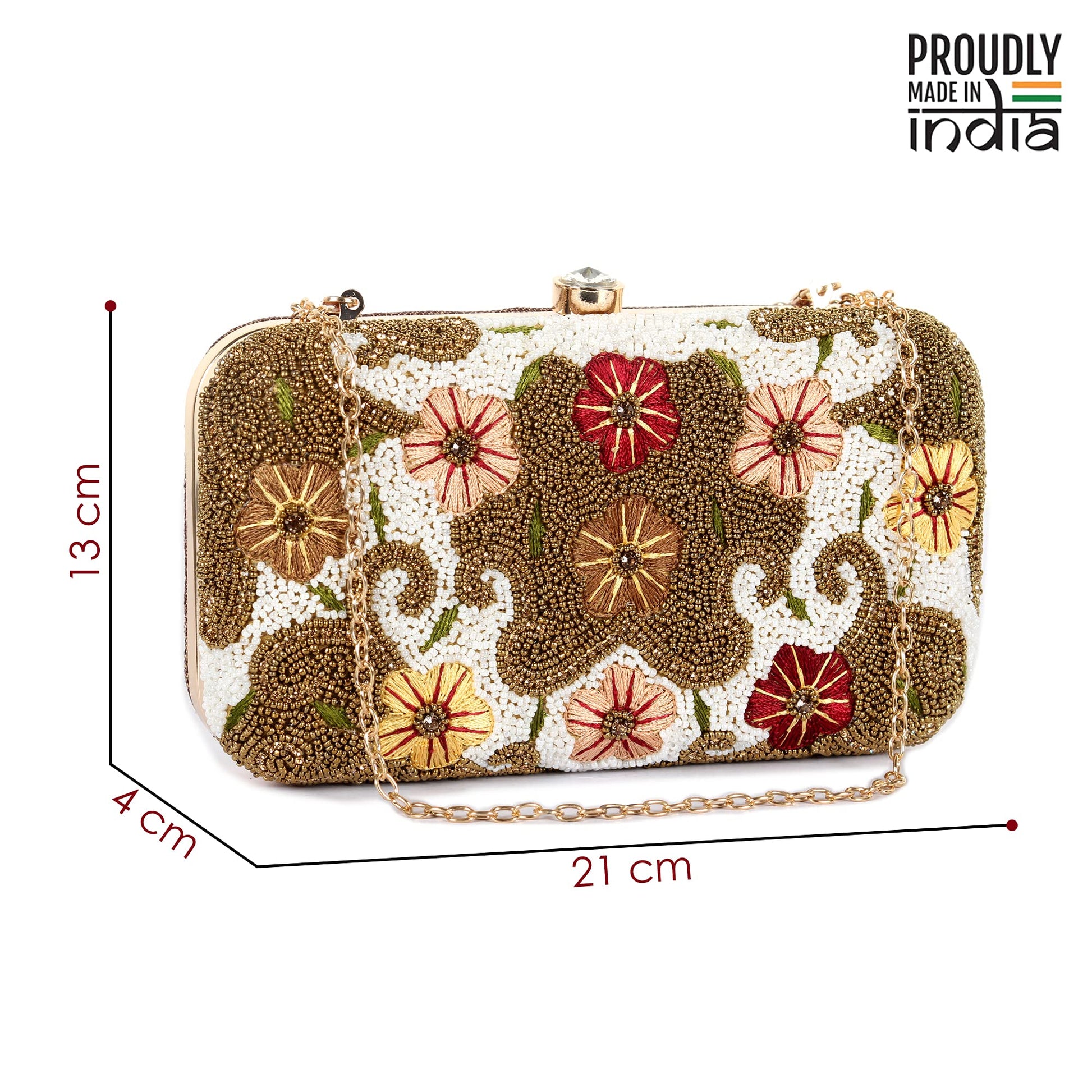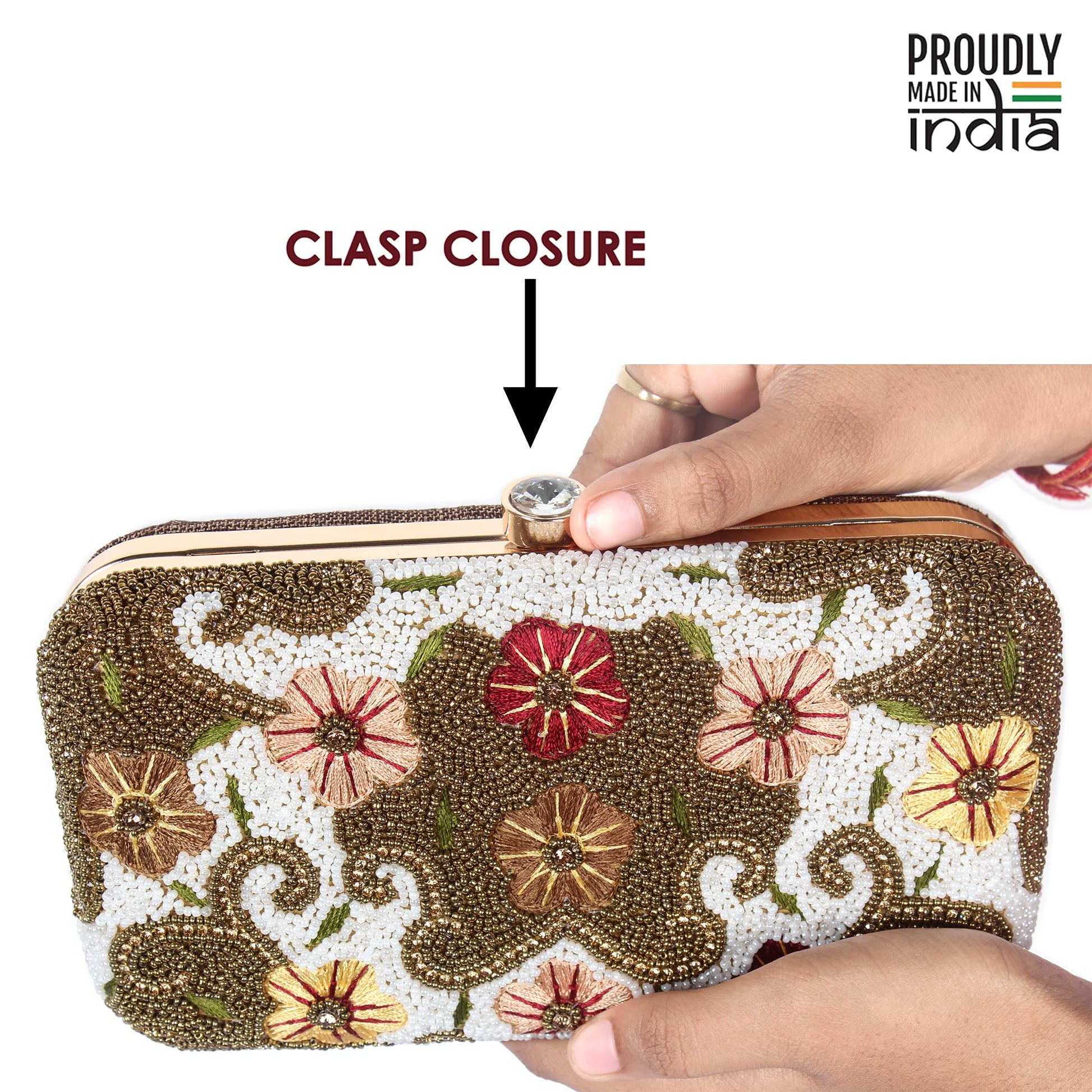 • Versatile Design: Adorned with beautiful floral embroidery and bead work, coupled with an easy crystal-studded clasp closure.