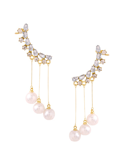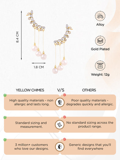 Introducing the Gold Plated Alloy Dangler Earrings by Yellow Chimes, your perfect accessory for any occasion. Crafted from high-quality alloy and elegantly gold plated, these stunning earrings measure 8.4 cm in length and 1.8 cm in width, weighing just 12 grams. They come beautifully packaged in an elegant Yellow Chimes box, making them a thoughtful gift.
