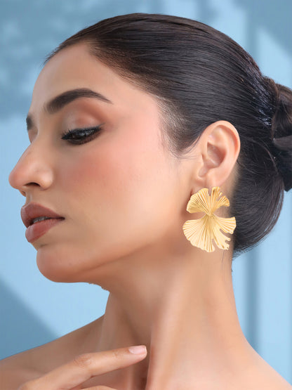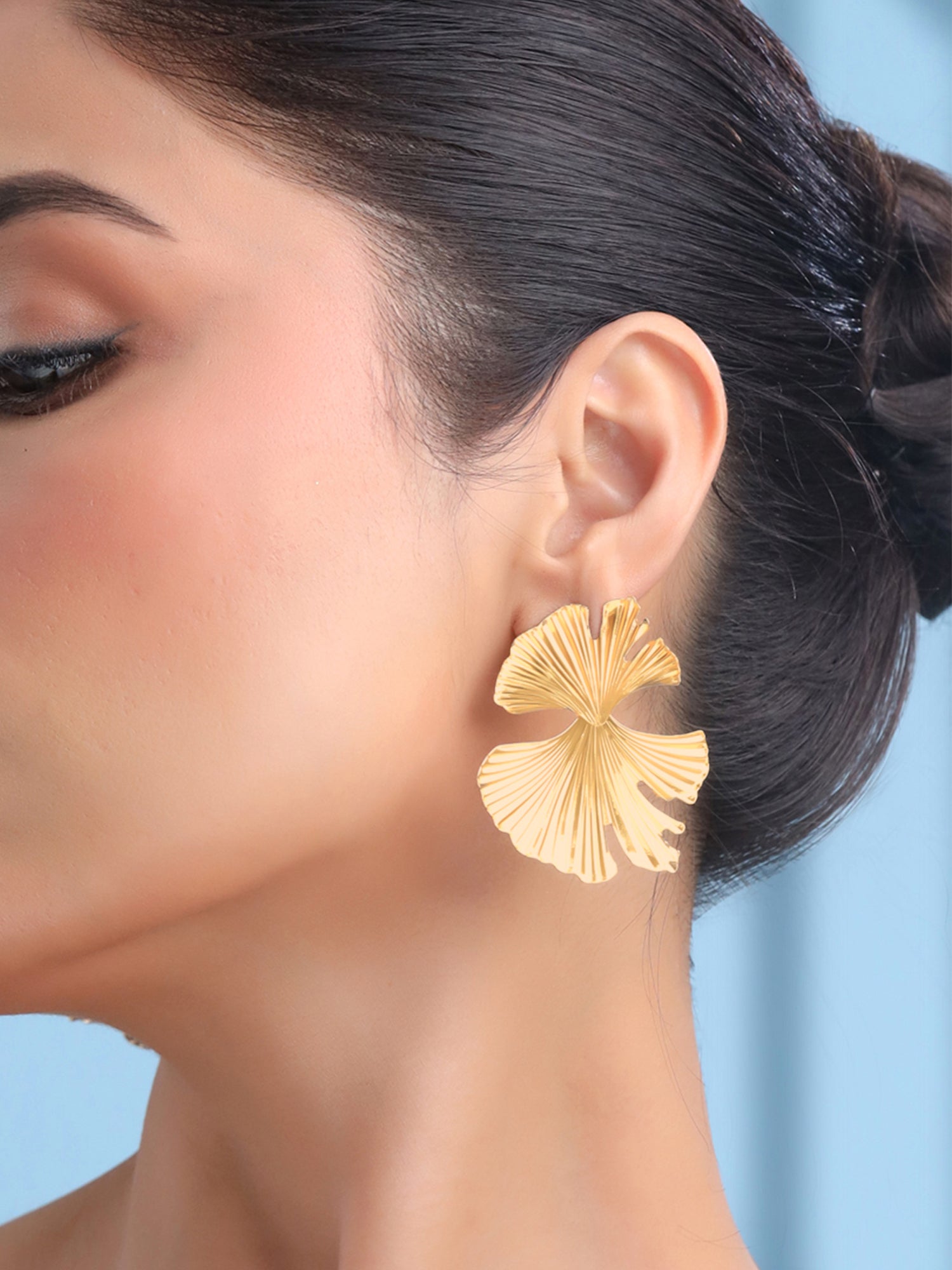 Elegant Drop Earrings: Gold Plated Petal Shaped | 5cm | Lightweight | Gold