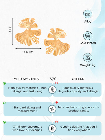 Introducing the Gold Plated Petal Shaped Drop Earrings by Yellow Chimes, a perfect blend of elegance and style designed to elevate your fashion game. Crafted from high-quality alloy and plated with exquisite gold, these drop earrings boast a lightweight construction equating to comfortable wear throughout the day.