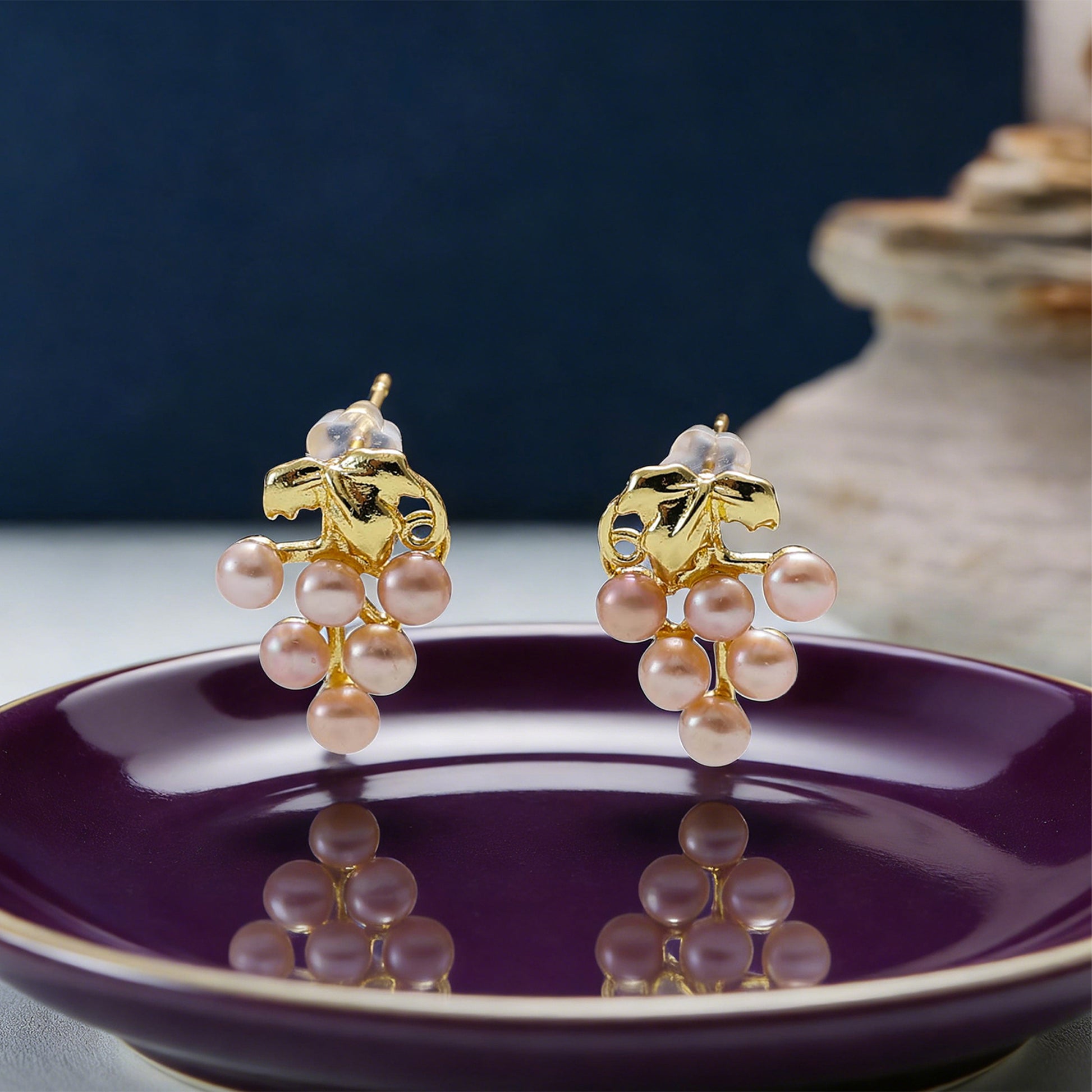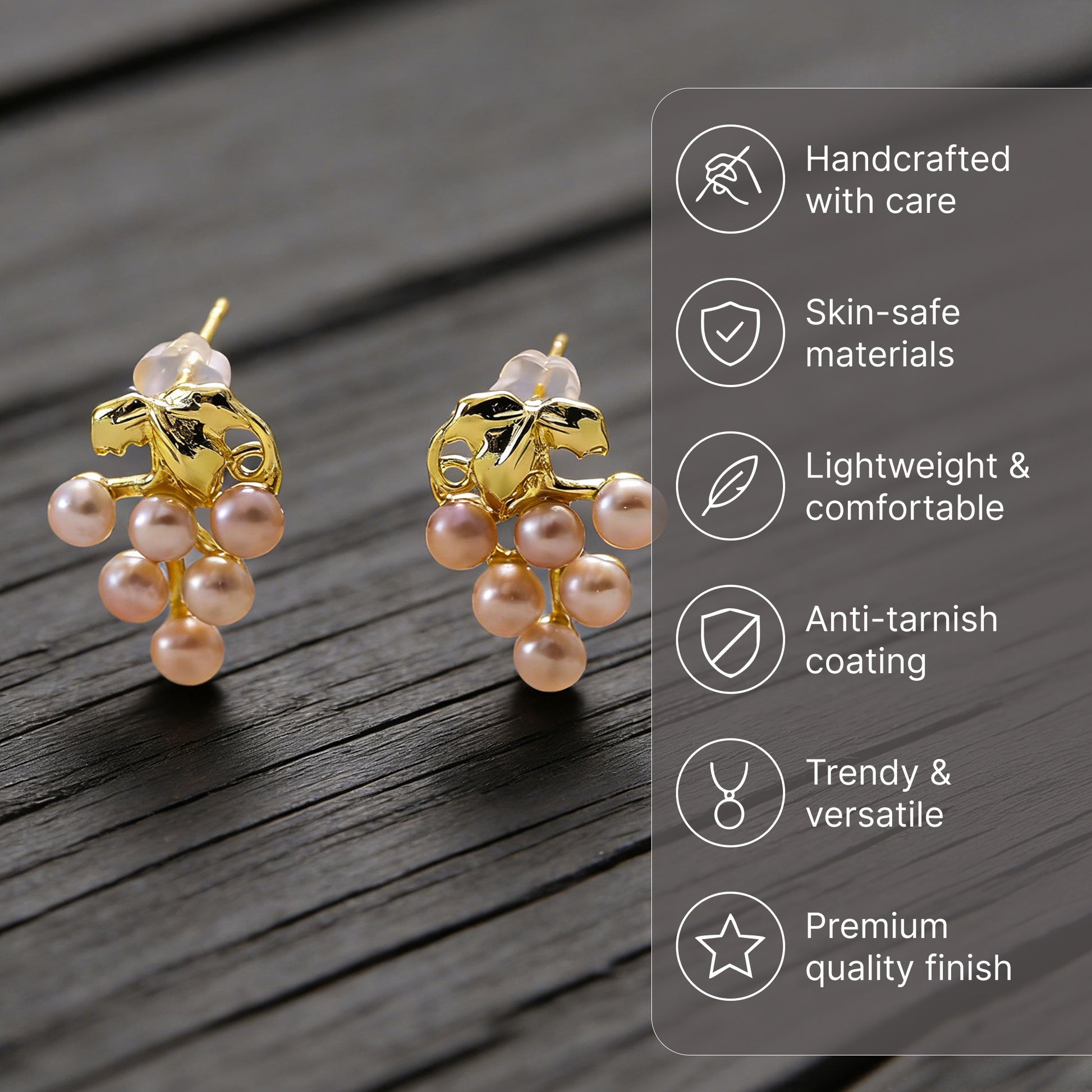 Introducing the Gold Plated Cluster Pearl Stud Earrings by Yellow Chimes, a stunning accessory designed for women and girls who appreciate classic beauty. This pair features multiple soft blush pearls arranged in an elegant grape style pattern, making them perfect for any festive occasion or elegant evening wear. The premium quality gold plating not only enhances the aesthetic appeal but also ensures durability and a long-lasting shine.