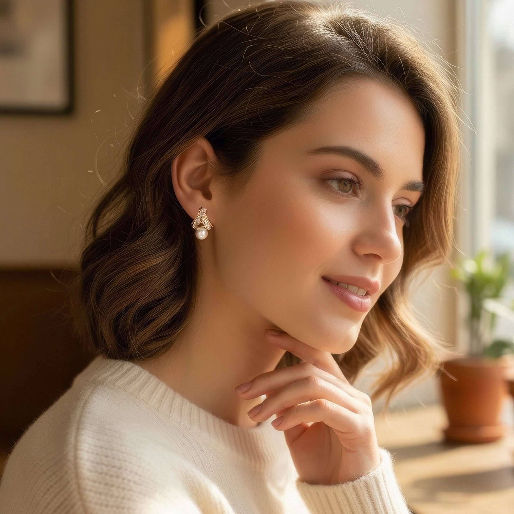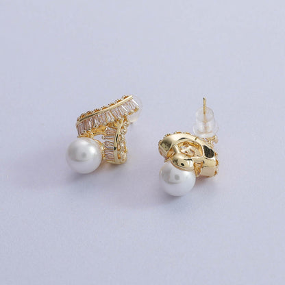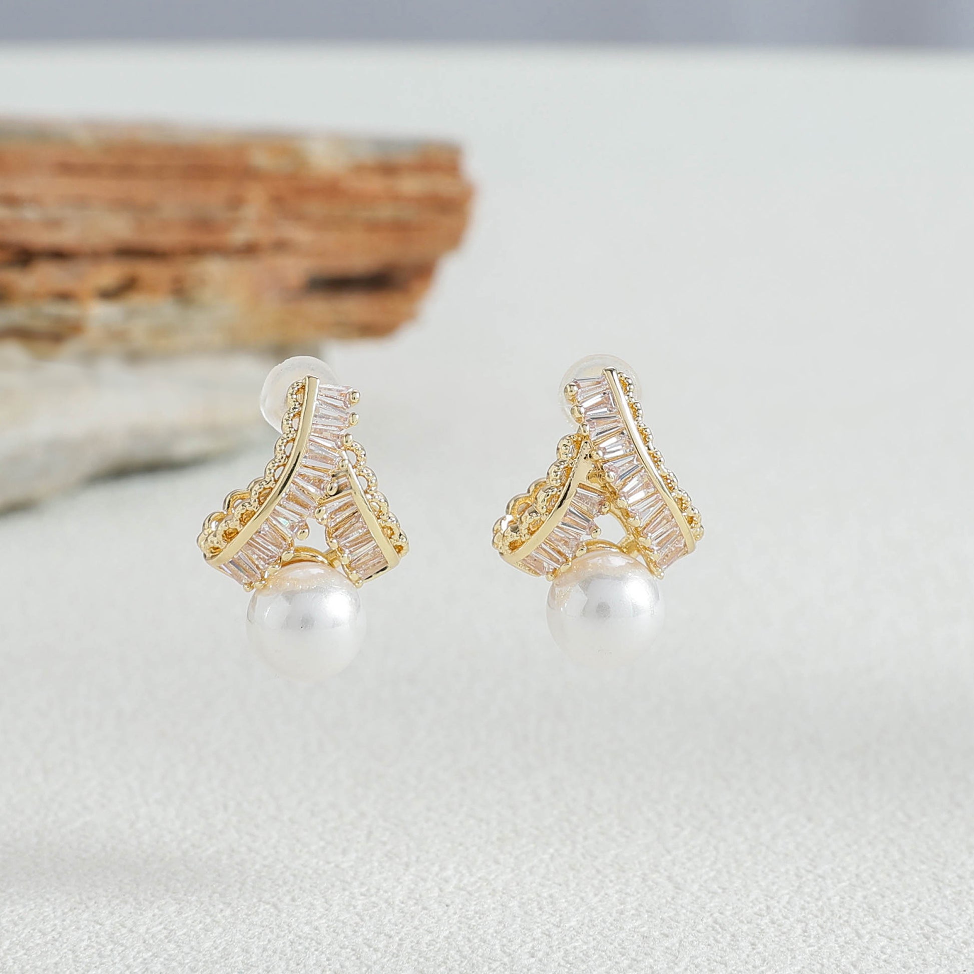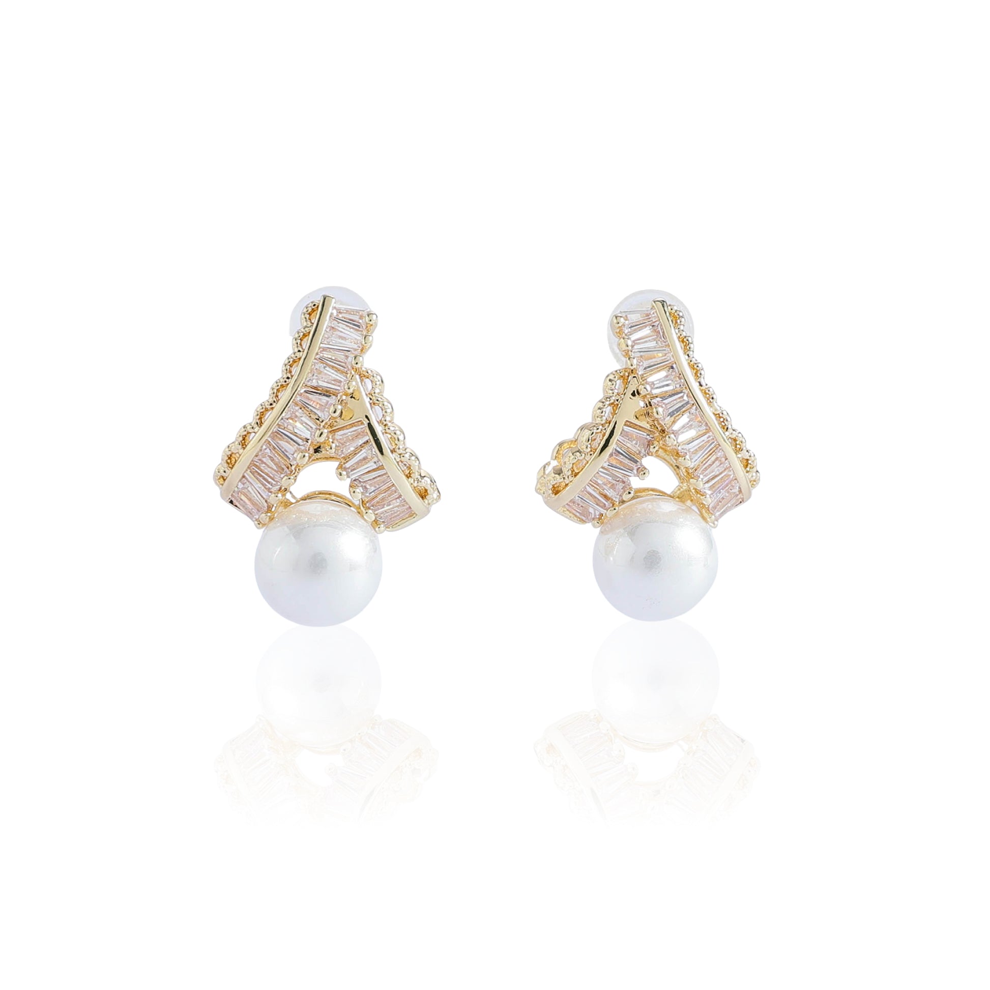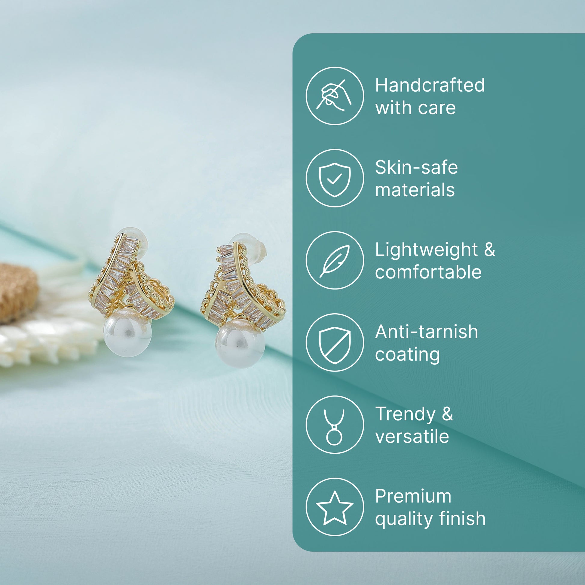 Elegant Gold Plated Pearl Stud Earrings for Women | Lightweight Party Wear