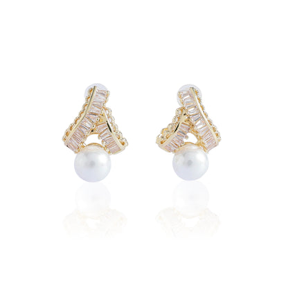 Introducing the Gold Plated Pearl Stud Earrings by Yellow Chimes, a sophisticated accessory that features sparkling crystals accompanied by lustrous artificial pearl drops. These lightweight earrings are perfect for various occasions, with a stunning design that enhances both everyday and formal looks.