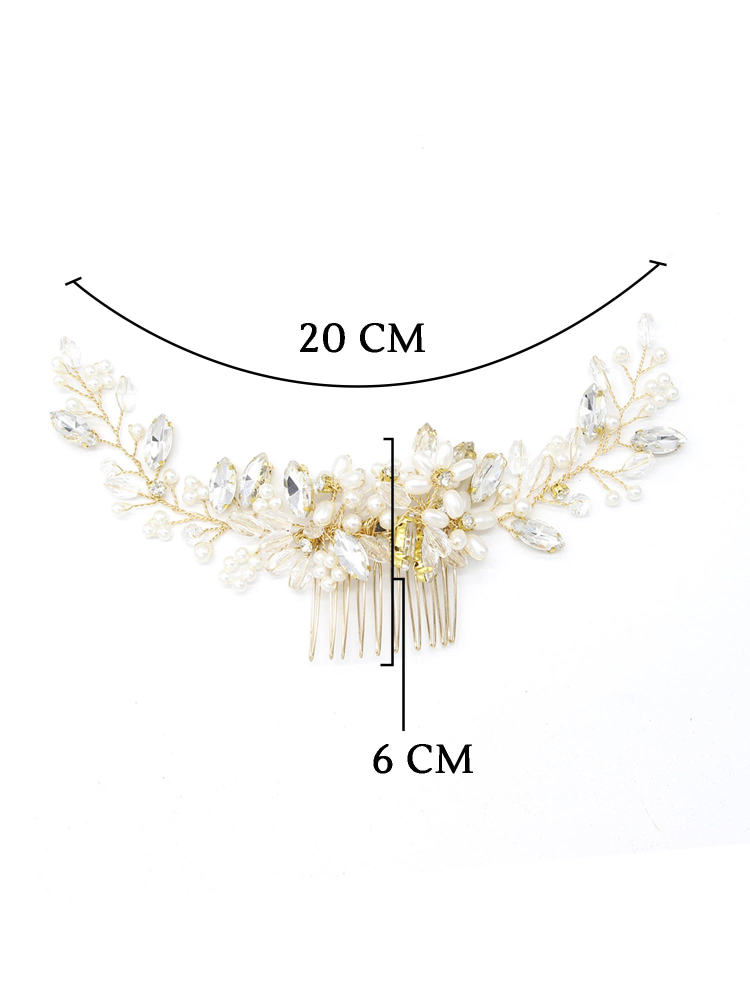 Introducing the Elegant Hair Comb Slide by Yellow Chimes. Measuring 8 cm in length, this stunning hair accessory is expertly crafted from high-quality alloy with sparkling rhinestones and chic faux pearls. It's perfect for both weddings and casual outings, making it a must-have in your collection.