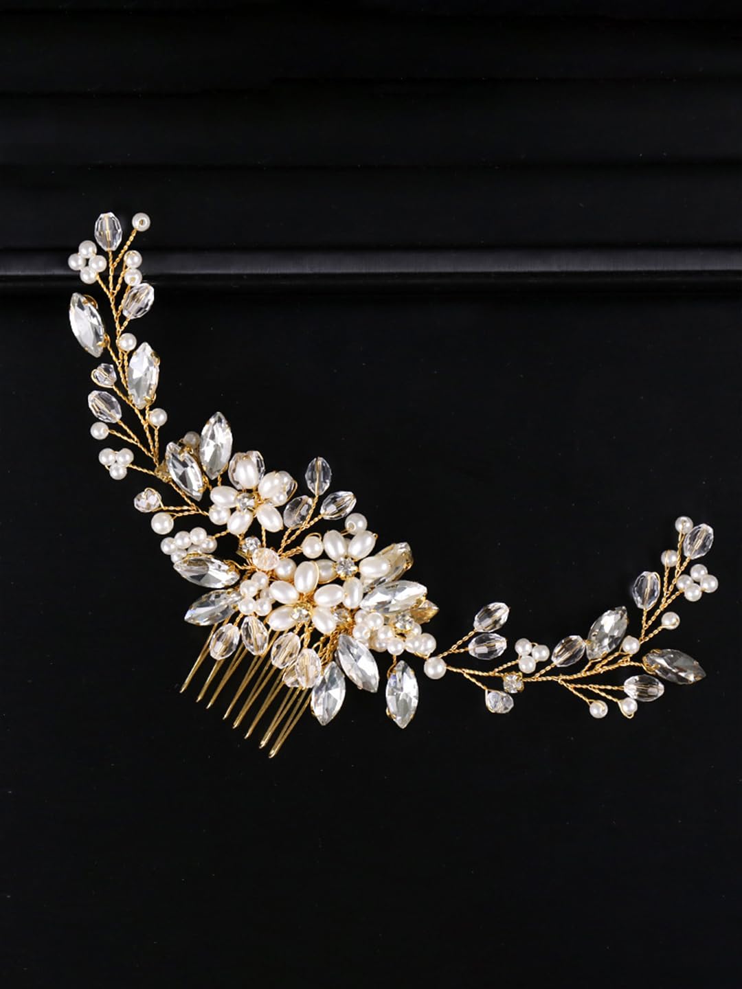 Yellow Chimes Bridal Hair Vine for Women and Girls Bridal Hair Accessories for Wedding Headband Hair Accessories Wedding Jewellery for Women Floral Bridal Wedding Head band Hair Vine for Girls