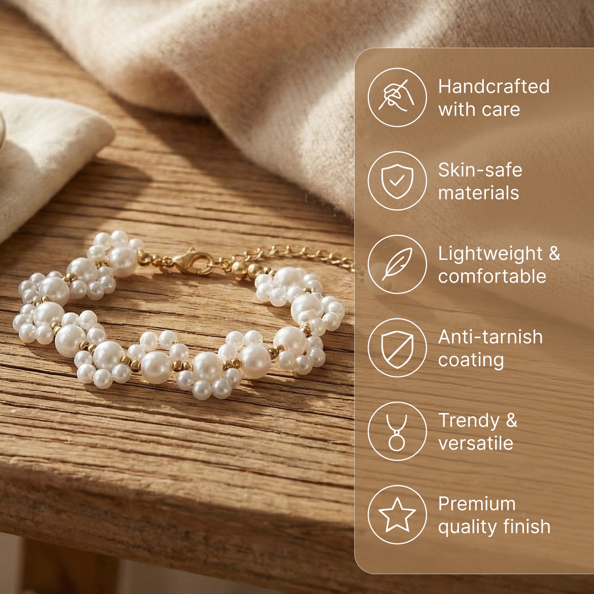 Elegant Pearl Station Bracelet: Minimal Silver Plated Jewellery | For Women | White