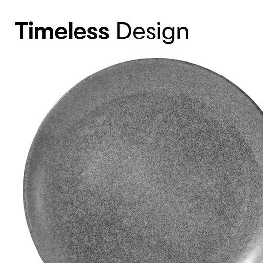 Combo: 12-Piece Stoneware Dinner Set - Microwave Safe | 4 Bowls, 4 Plates | Ceramic | Grey