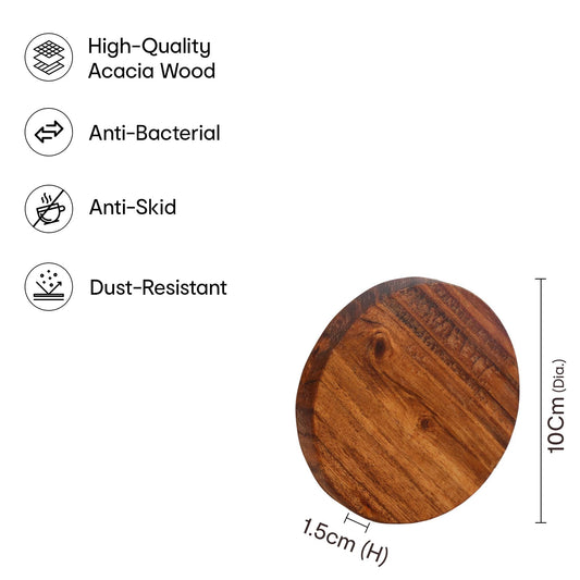 Set of 4: Reversible Acacia Wood Tea/Coffee Coasters - Stain & Heat Resistant | 10cm Dia | Natural