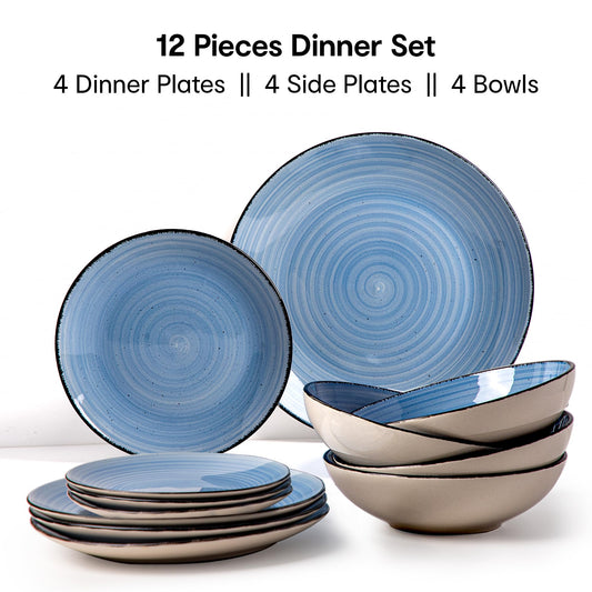 Tapa 12 Pieces Dinner Set | Premium Crockery for Dining Table| Lead & Cadmium Free, Microwave & Dishwasher Safe| Stoneware| Matt Glaze Finish | 4 Dinner Plates, 4 Side Plates, 4 Bowls | Blue
