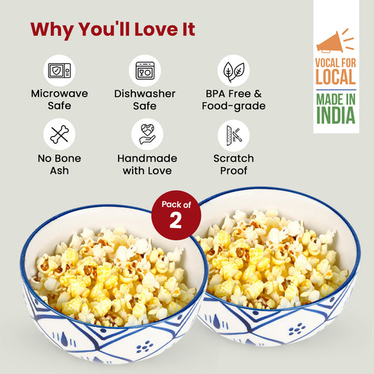 USHA SHRIRAM Ceramic Bowl for Snack & Dinner(2Pcs) | Ramen Soup Bowl Microwave Safe | Chip Resistant Dinnerware | Snack Serving Bowl | Dinning Bowl Katoris for Dinner | Serving Bowl Set | Pasta Bowl