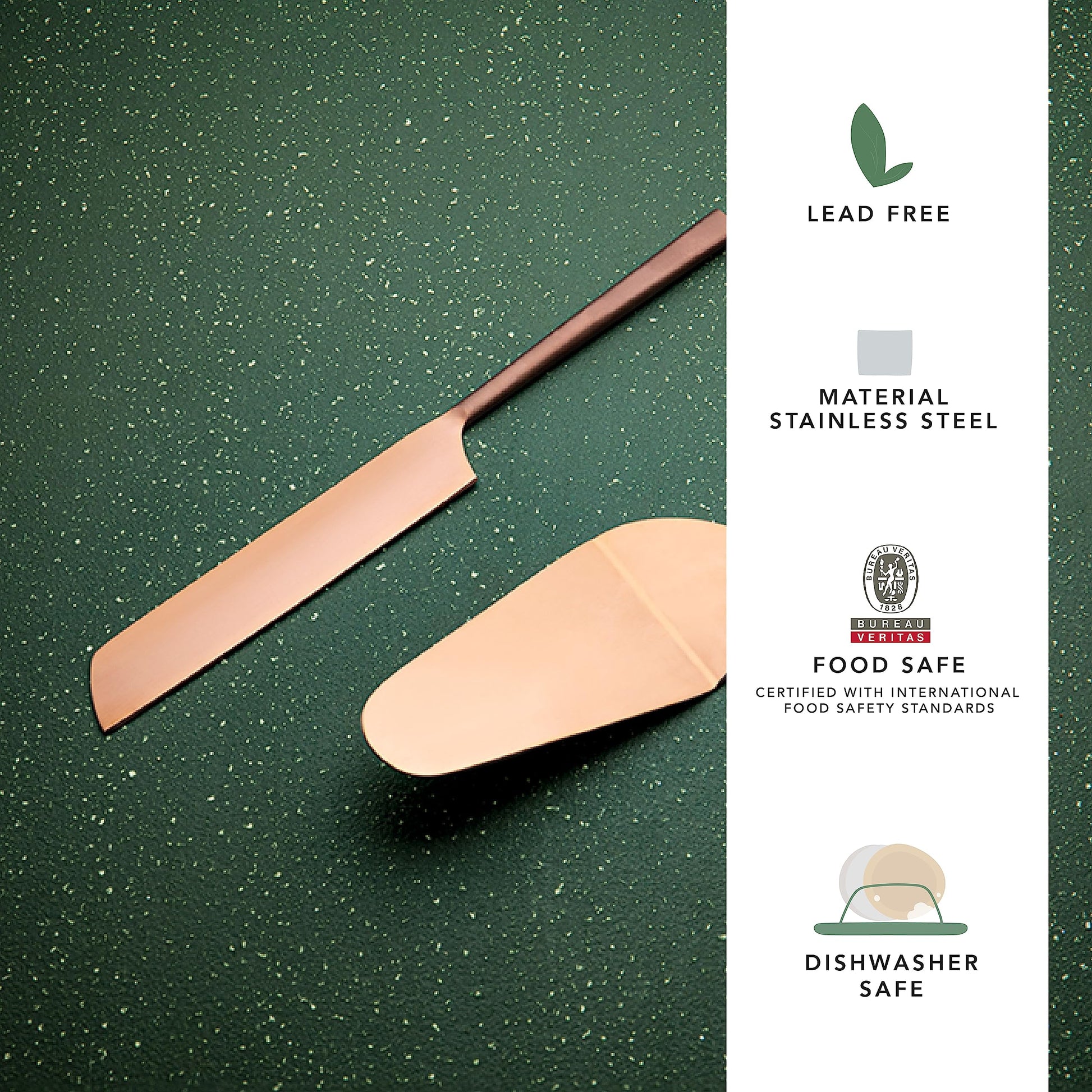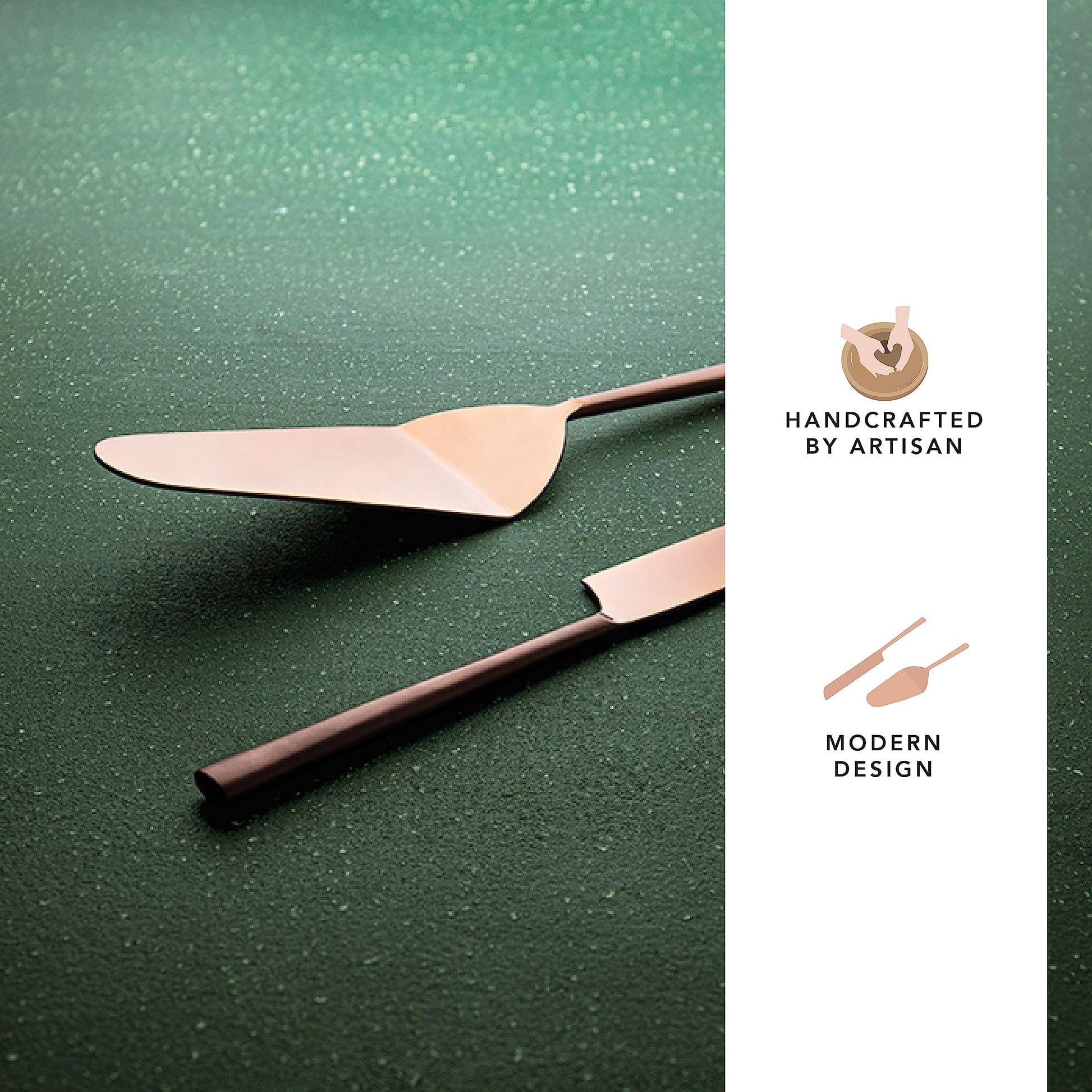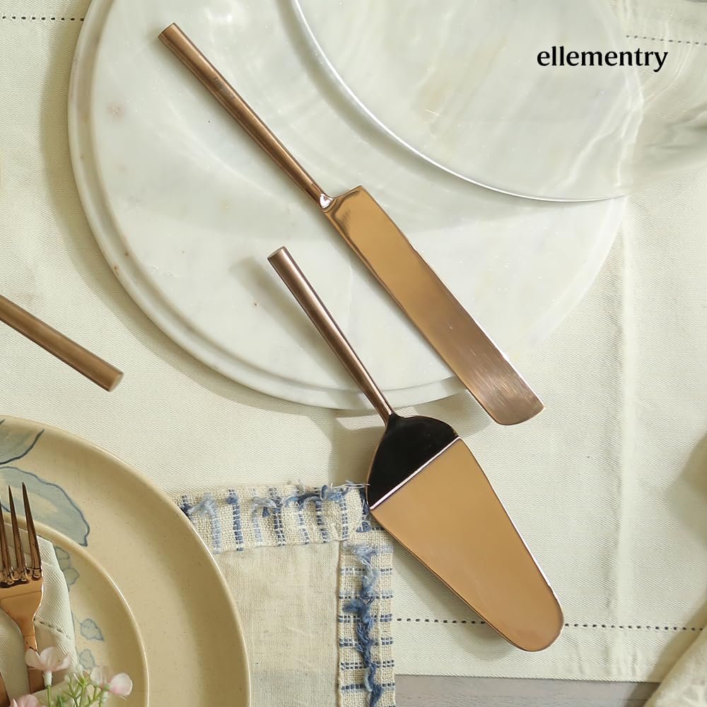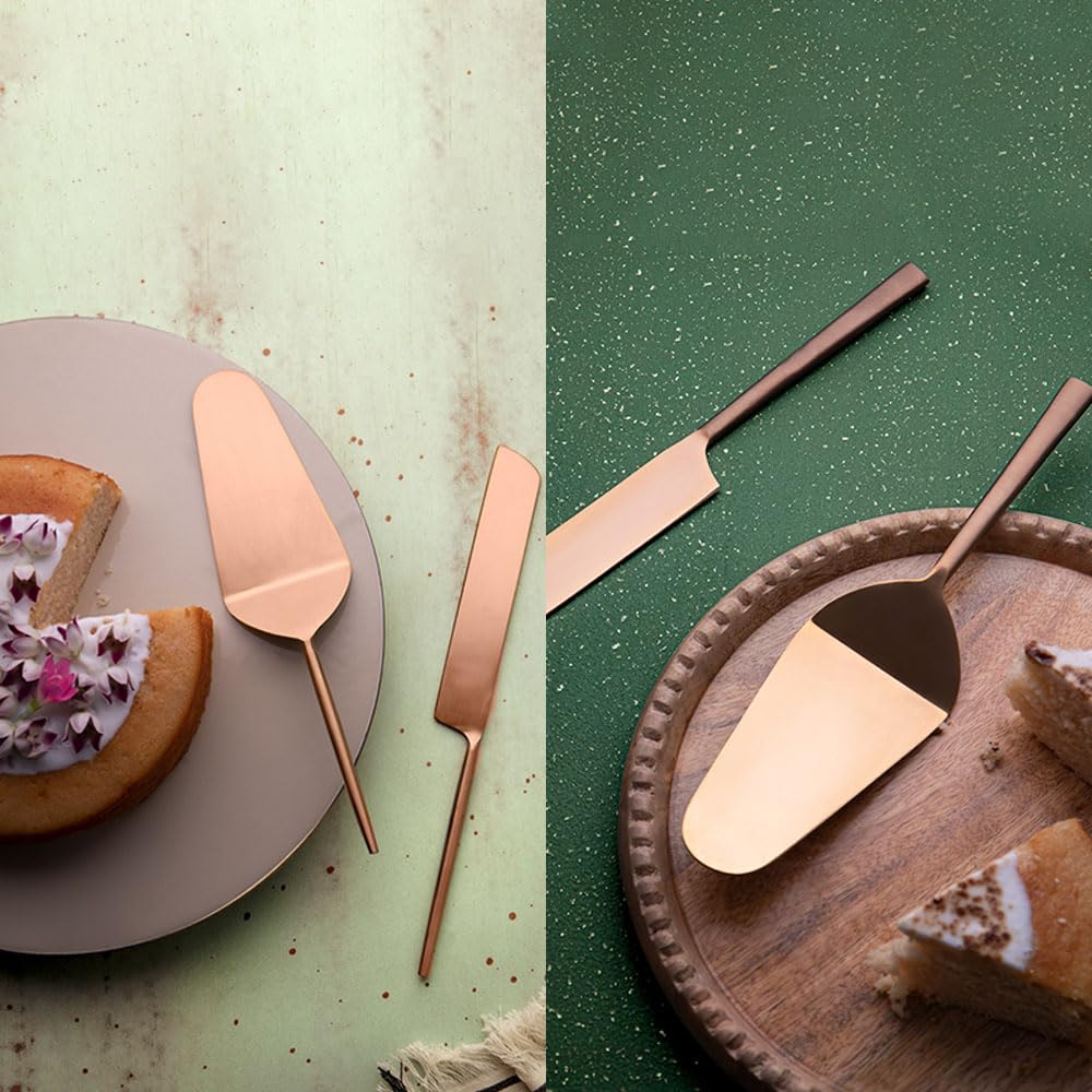 Ellementry Enigma Rose Gold Cake Set of Two| Wedding Cake Cutting Knife | Cake, Pie & Pastry Server | Dessert Server for Birthday, Anniversary, Holiday, Baby Shower & Party
