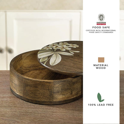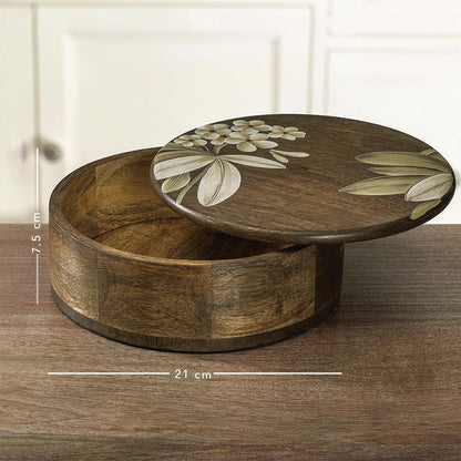 Frangipani Wood Round Roti Box| Casserole with Wooden Lid | BPA Free | Food Grade | Serving | Easy to Carry | Kitchen Organizer And Kitchen Storage | Wooden Chapati Box