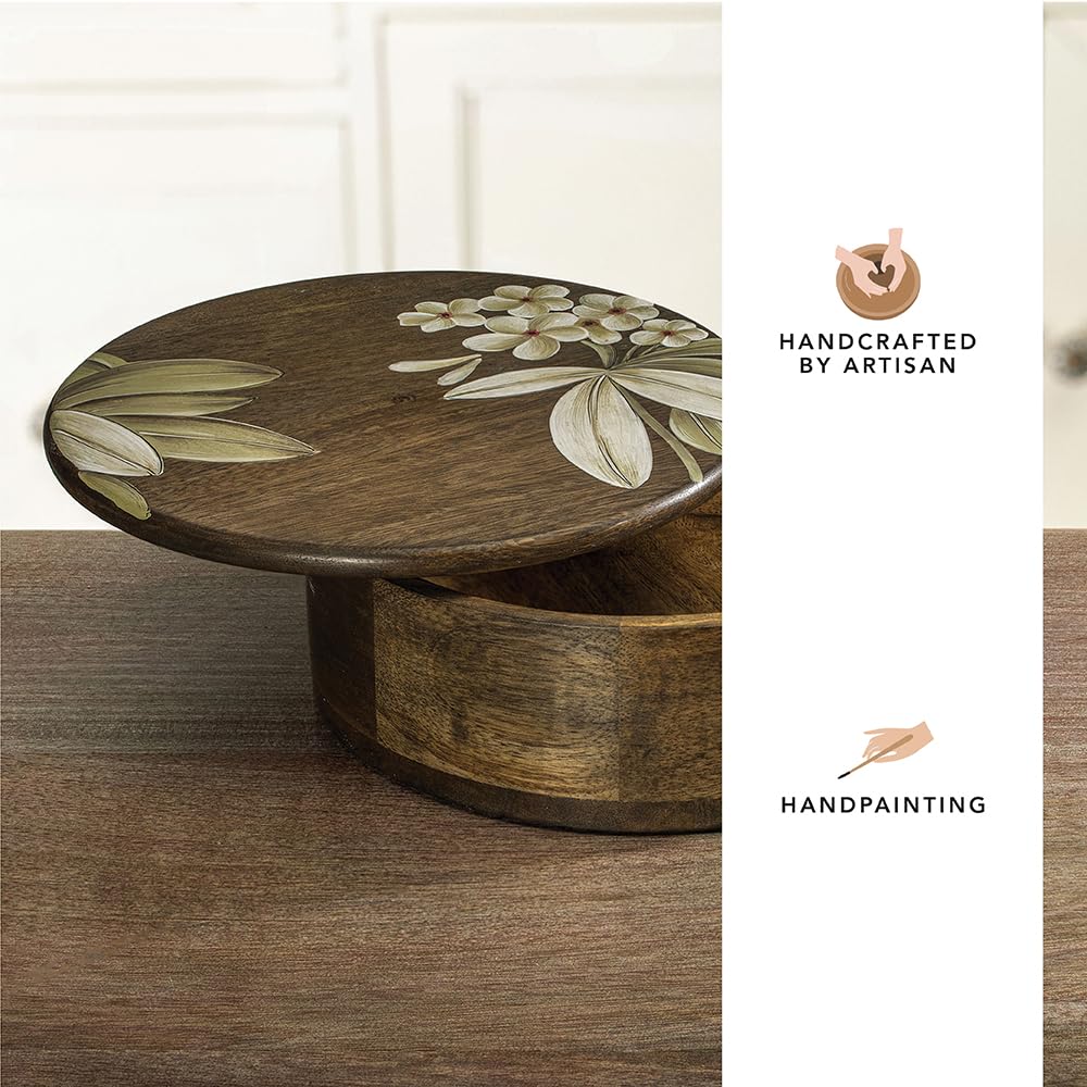 Ellementry Frangipani Wood Round Roti Box| Casserole with Wooden Lid | BPA Free | Food Grade | Serving | Easy to Carry | Kitchen Organizer And Kitchen Storage | Wooden Chapati Box