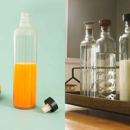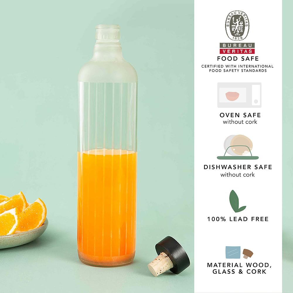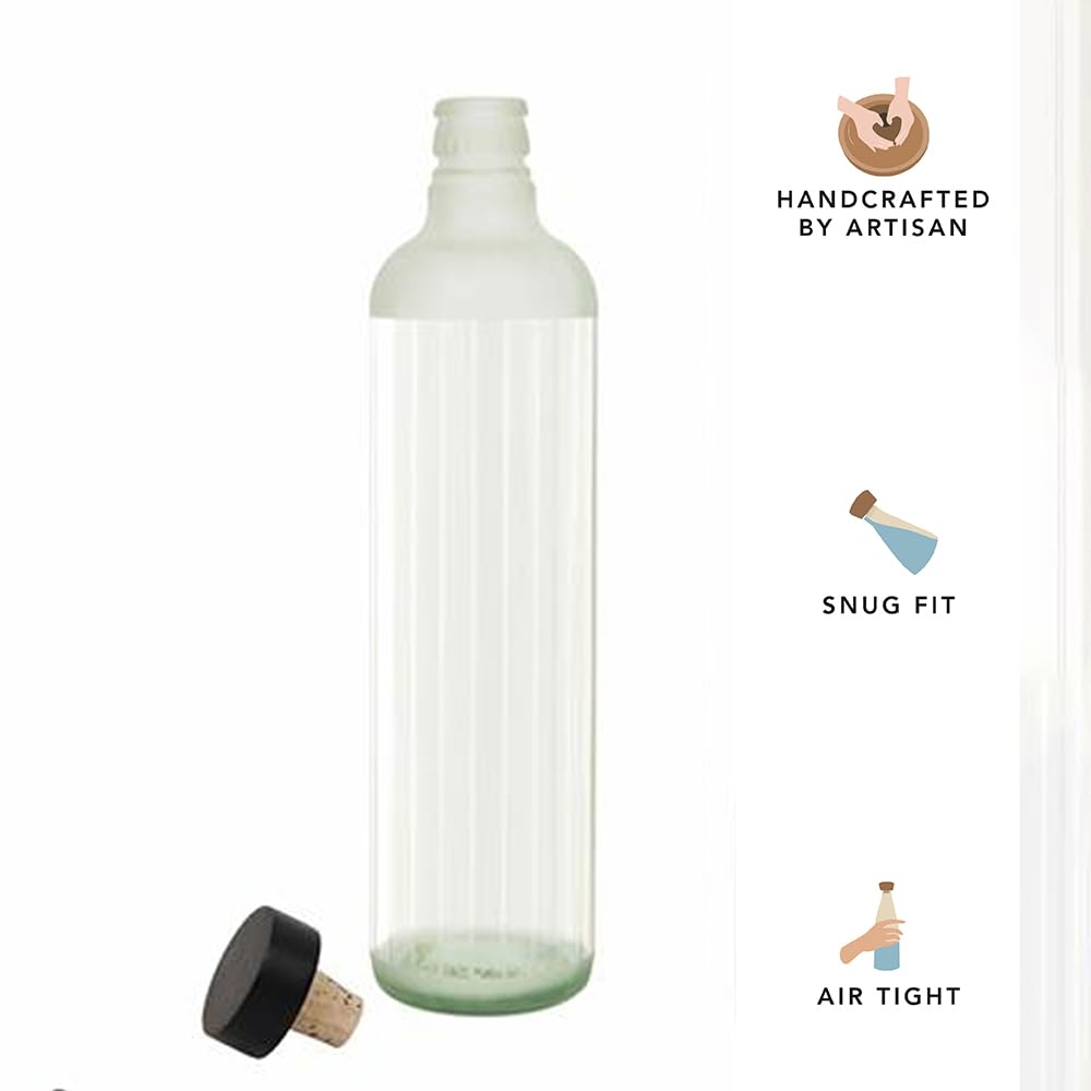 Frosty Handcrafted Glass Water Bottle with Cork (750 ML)| Eco- Friendly Glass Water Bottle for Fridge, Home, Office | BPA Free | Sustainable Glass Bottle for Decor and Gifting