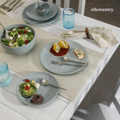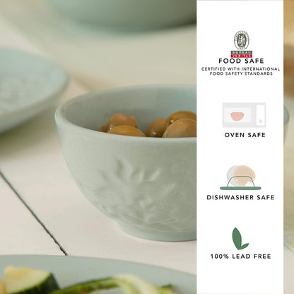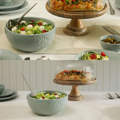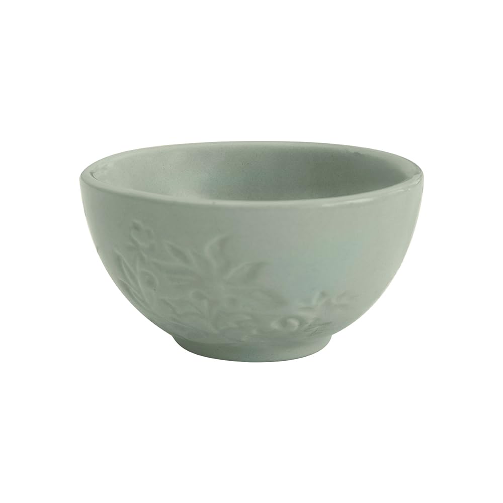 • Elegant Design: The smooth, glossy surface of the Upper Crust Bowl features intricate floral and leafy engravings, complemented by a rich blue color that brings calmness and sophistication to your table.
