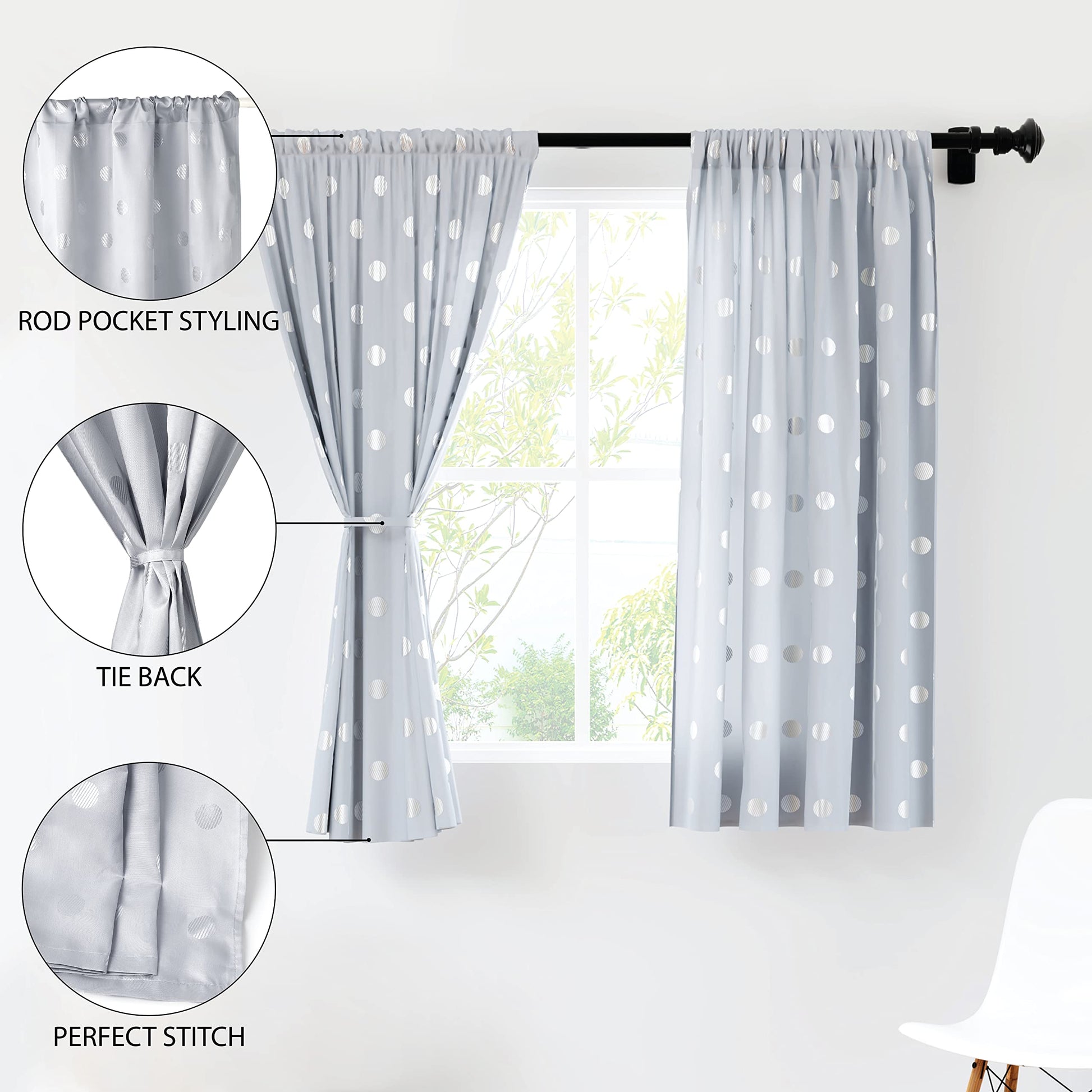 Homes Polyester Printed Window Curtain for 5 ft with Tie Back, Rod Pocket, Light-Filtering, Curtains for Kitchen, Bedroom, Living Room (140x152 cm), Dollar Grey, Set of 2