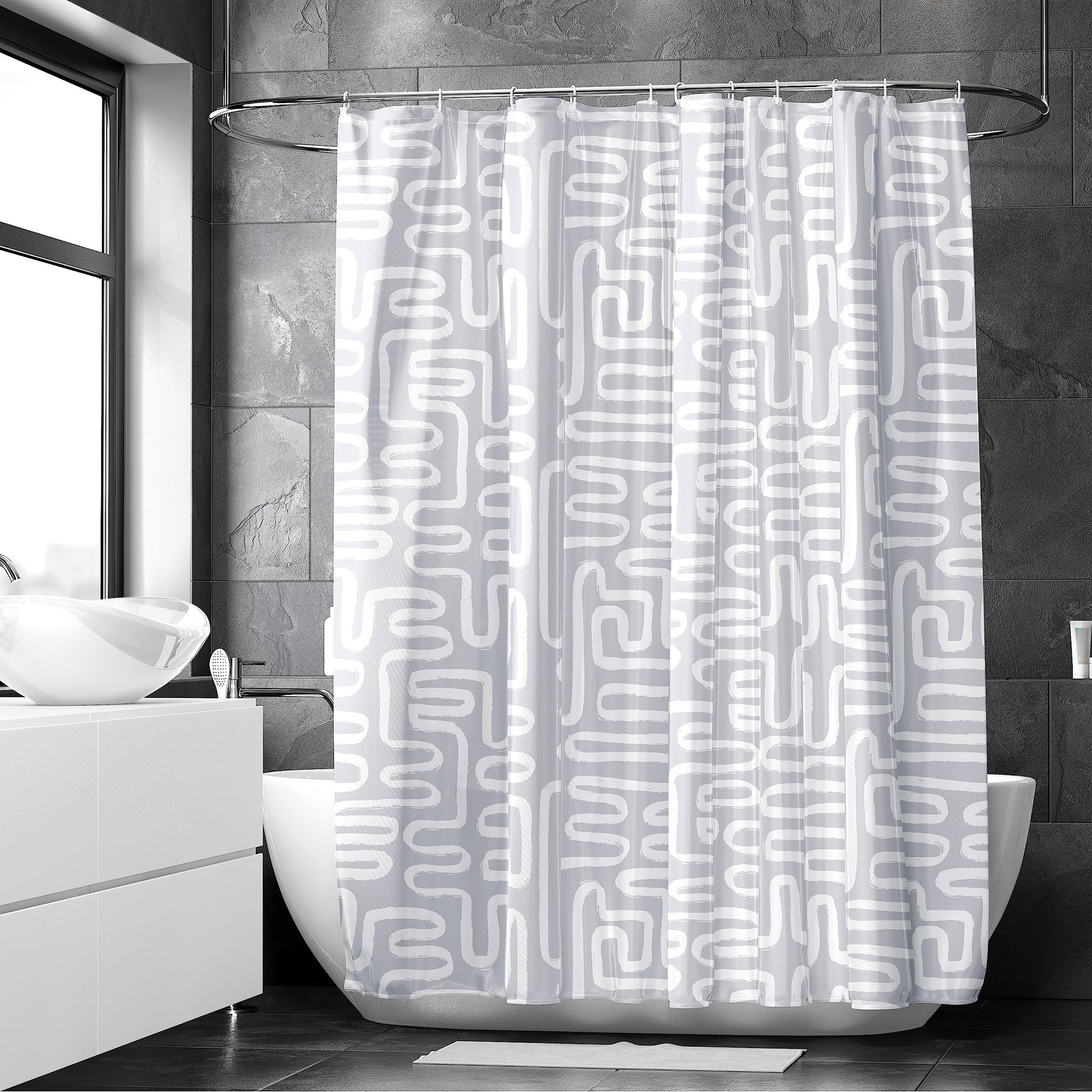 Homes Bathroom Shower Curtains | Heavier Quality Waterproof Fabric | 6 ft | 10 Free Hooks Included - Boho Maze Grey
