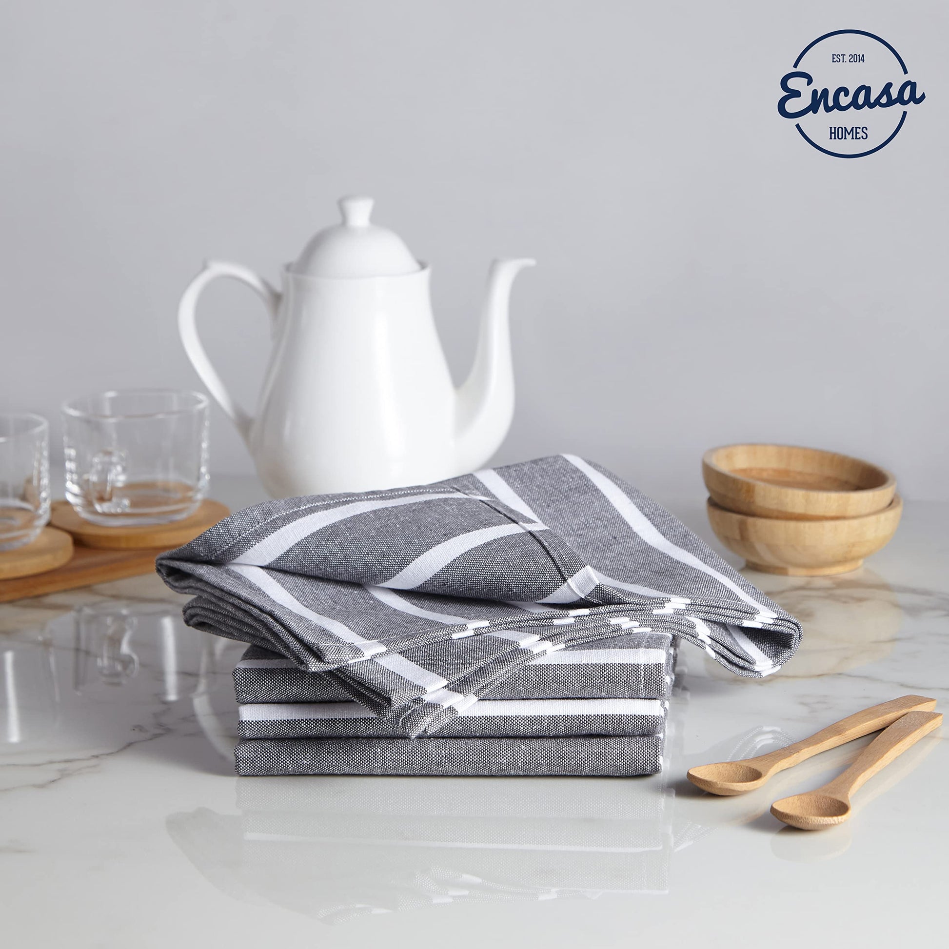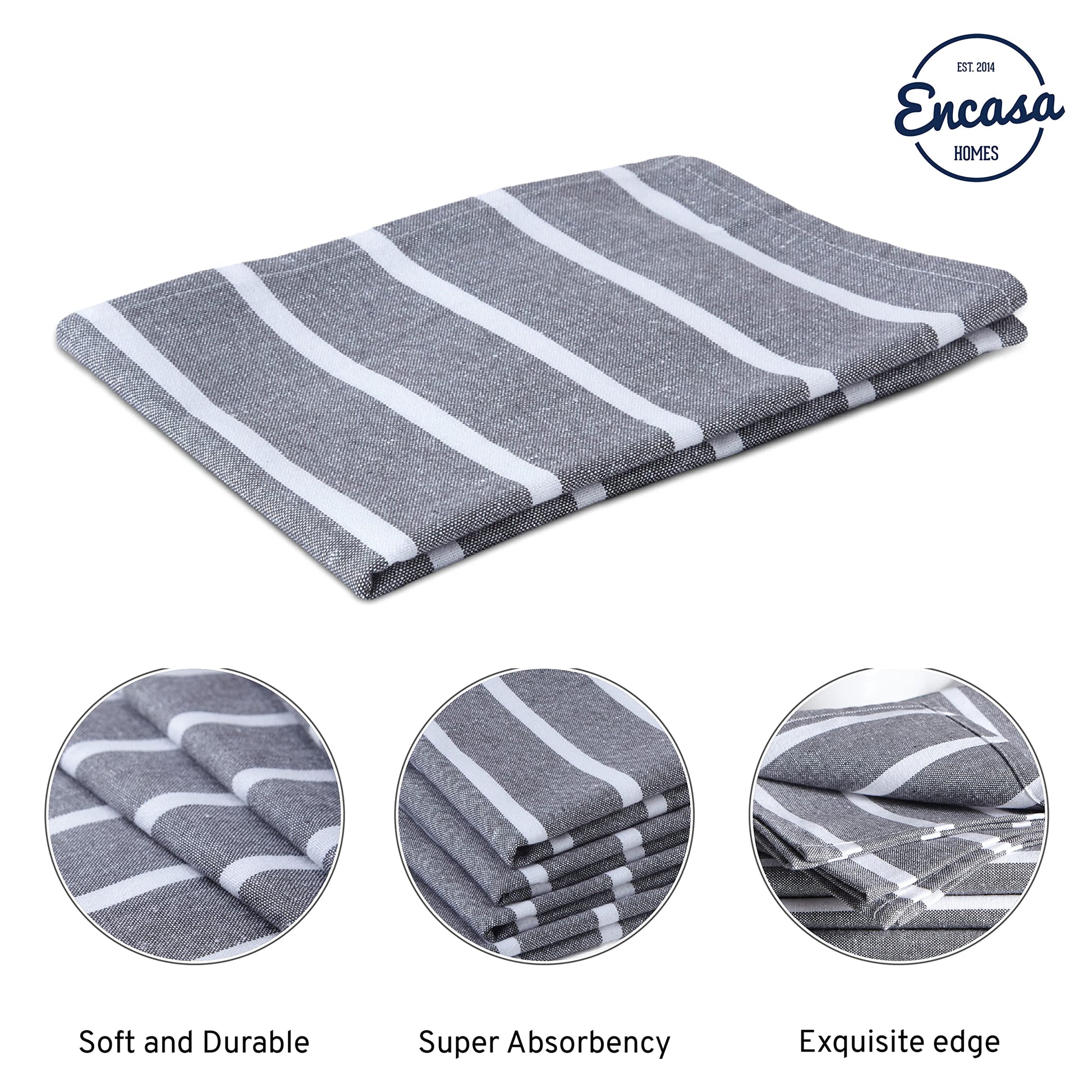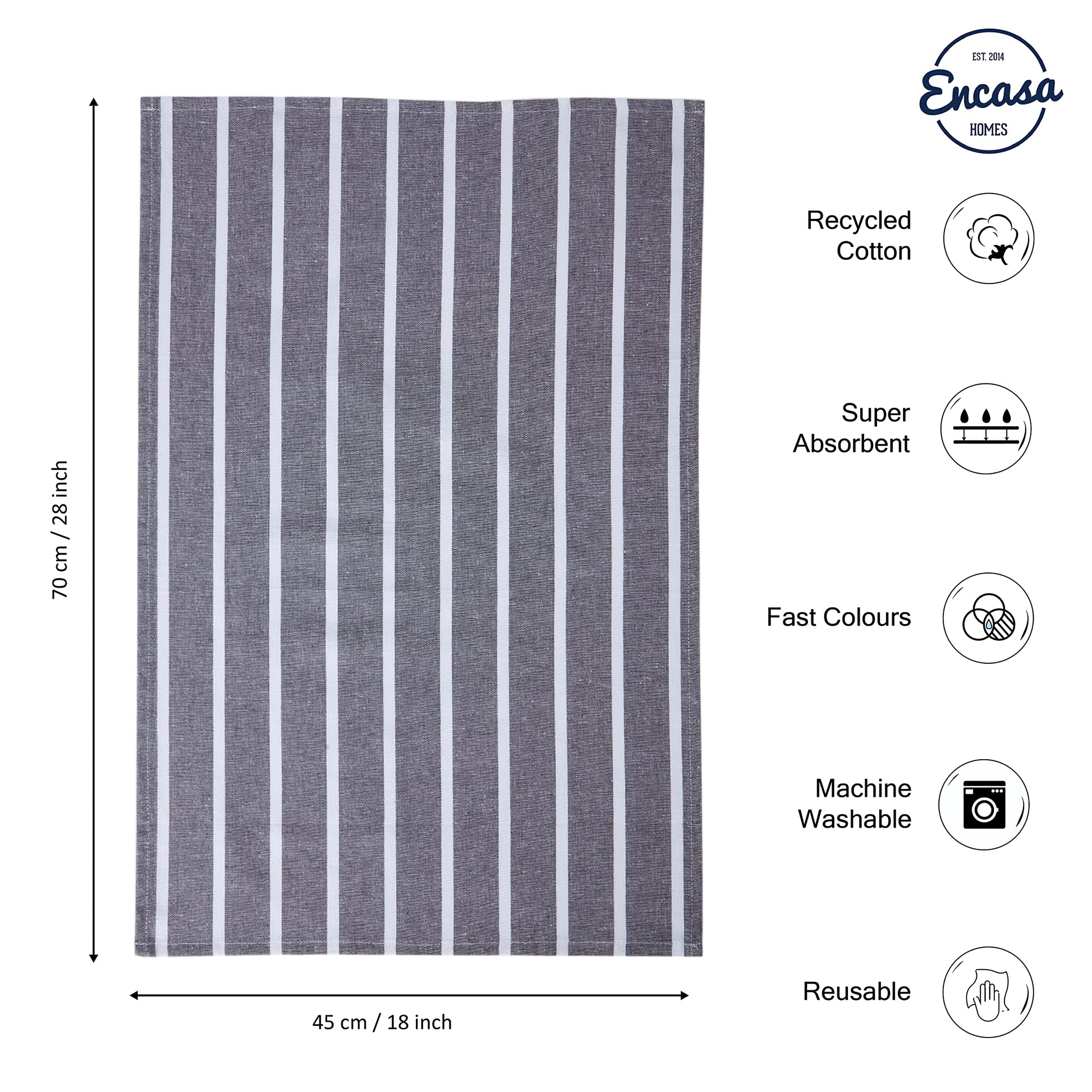 Encasa Homes Kitchen Dish Towels Made with Eco-friendly Cotton | Highly Absorbent for Cleaning & Quick Drying of Plates & Glasses | X-large, 18" x 28" | Roma Grey Stripes (Set of 4 pieces)