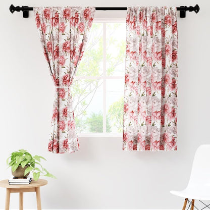 Encasa Window Curtain 5 ft Set of 2, Polyester Printed with Rod Pocket, Tie Back, Light-Filtering, Semi Sheer/Transparent Curtains- Kitchen, Bedroom, Living Room (140x152 cm), Peonies