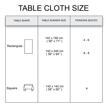 - High-Quality Polyester Fabric: Crafted from soft, silky polyester, this table cloth is designed to withstand the test of time. It resists fading and shrinking, even after multiple washes.