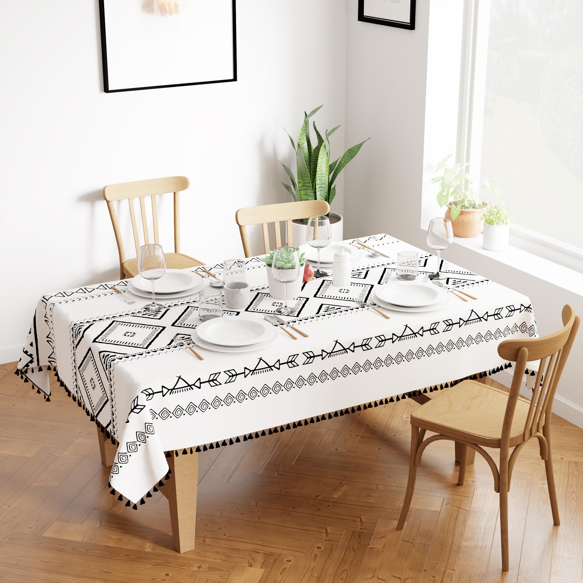 Encasa XO Silky Polyester Table Cloth for 6 to 8 Seater Table | Printed Boho Panel Design with Tassels | Use Kitchen Dining, Festivals, Indoor & Outdoor Parties with Size 140x240 cm