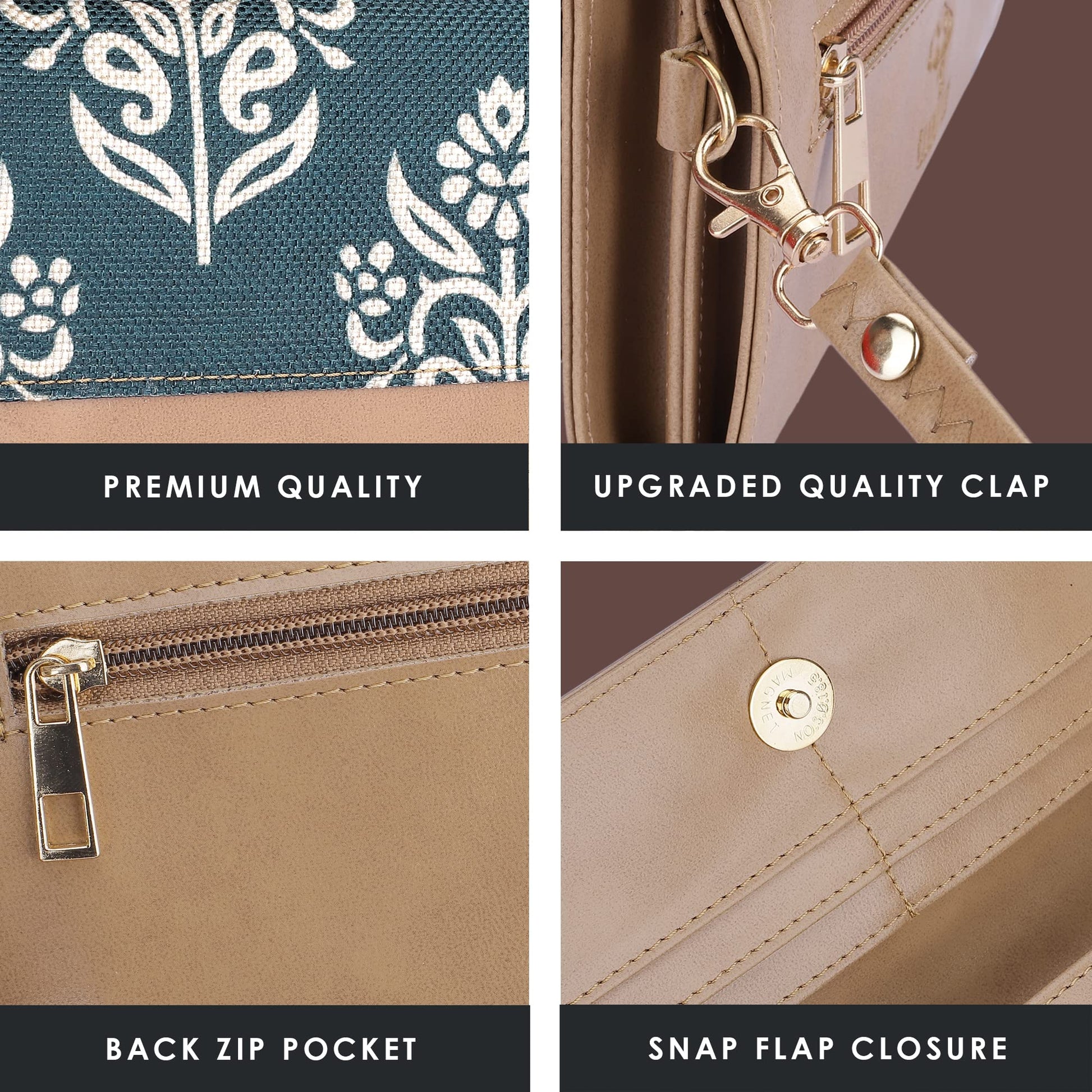 - PREMIUM MATERIAL: Crafted from durable and tested printed handicraft fabric and vegan leather for longevity and elegance.
