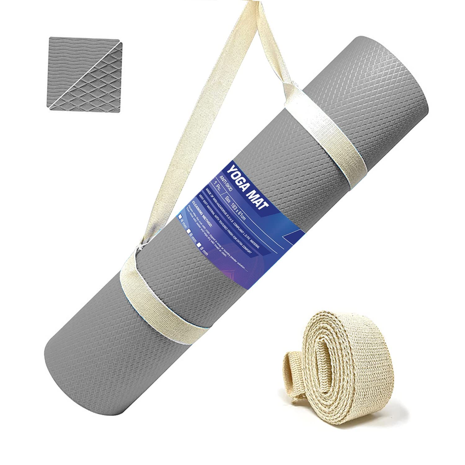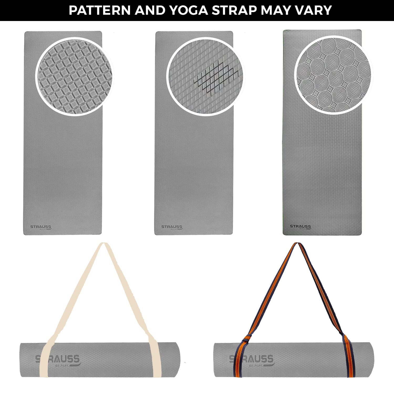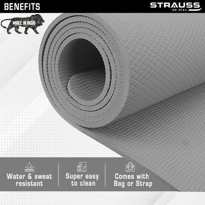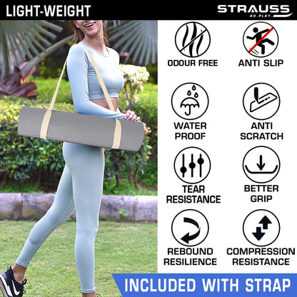 Strauss Anti Skid EVA Yoga Mat with Carry Strap, 4mm, (Grey)
