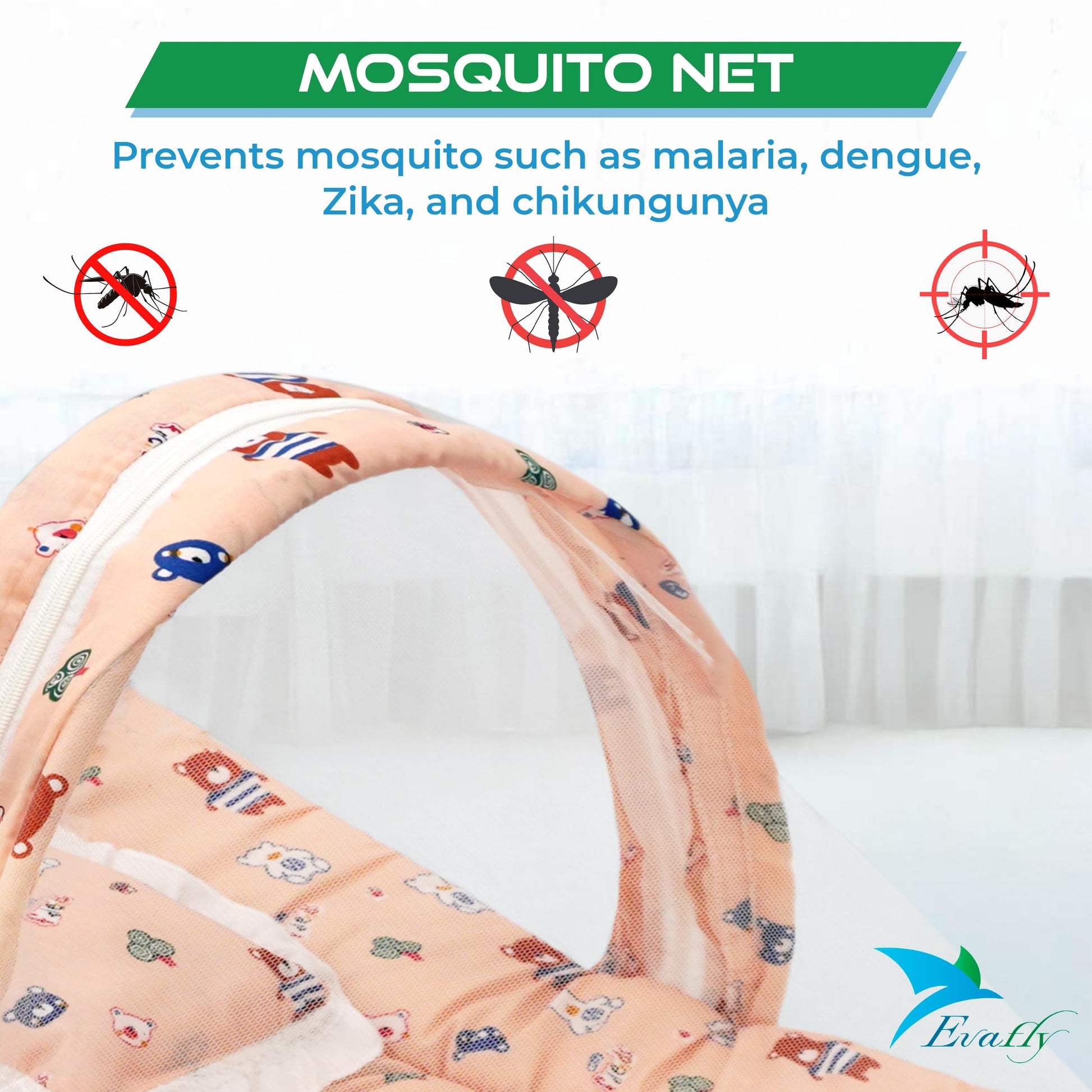 Evafly Baby Mosquito Net: Peach Mosquito Protection with Neck Pillow | L73cm x W44cm