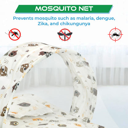 • Complete Baby Bedding Set: Includes a soft mattress, protective mosquito net, and a comfortable neck pillow for peaceful sleep.