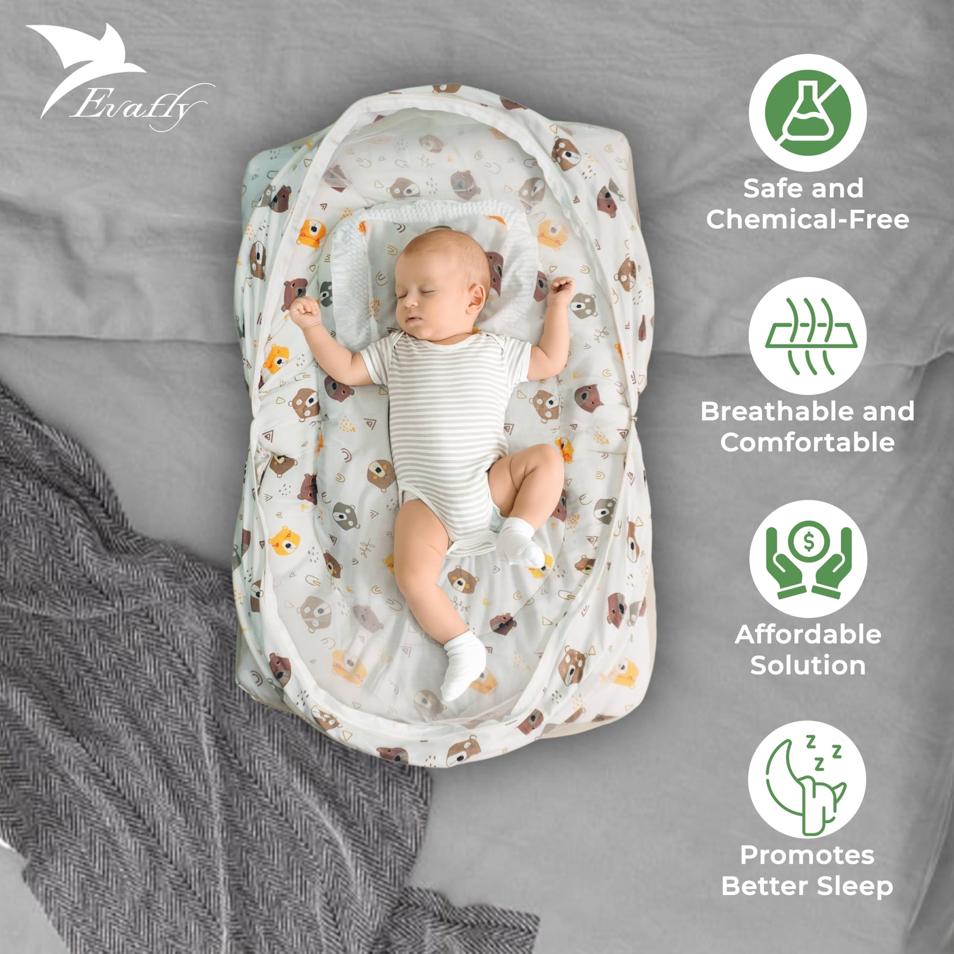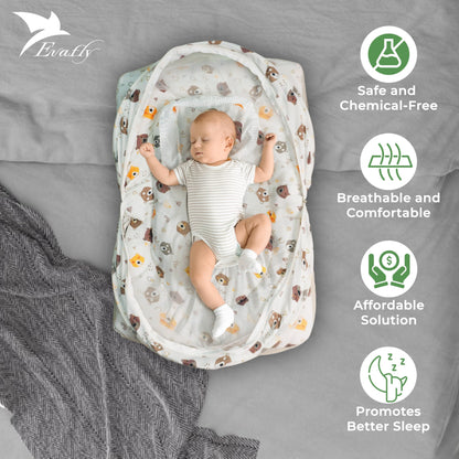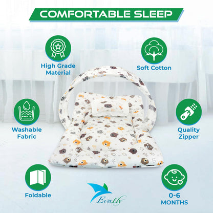 Evafly Baby Mosquito Net with Cotton Bed: Bear Print | 73x44cm | Cream
