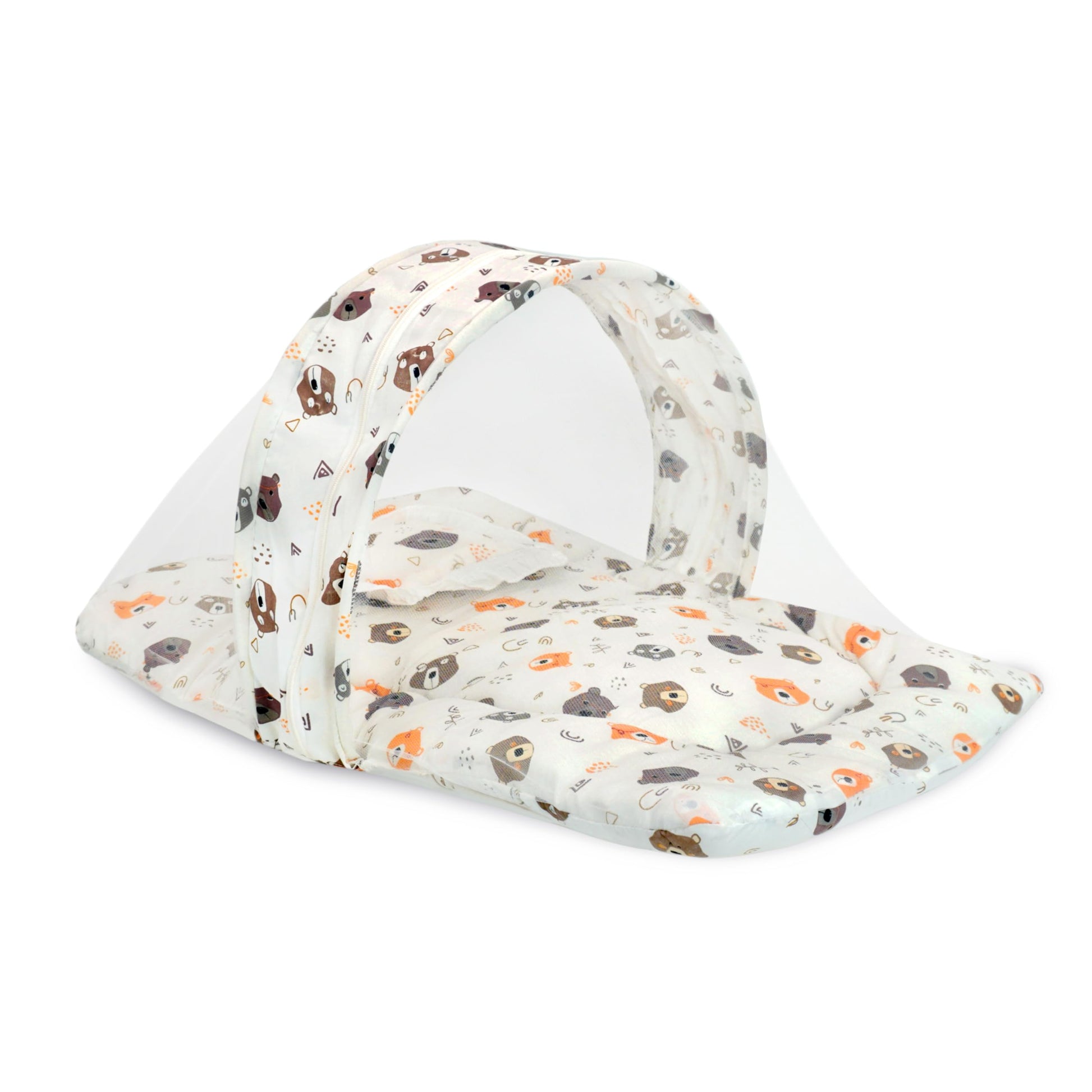 Baby Mosquito Net with Cotton Bed: Bear Print | 73x44cm | Cream