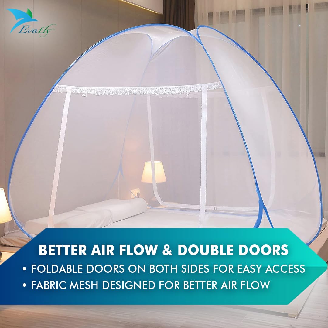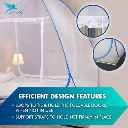 Evafly Double Bed Mosquito Net - King Size Foldable with 30 Stars | Blue