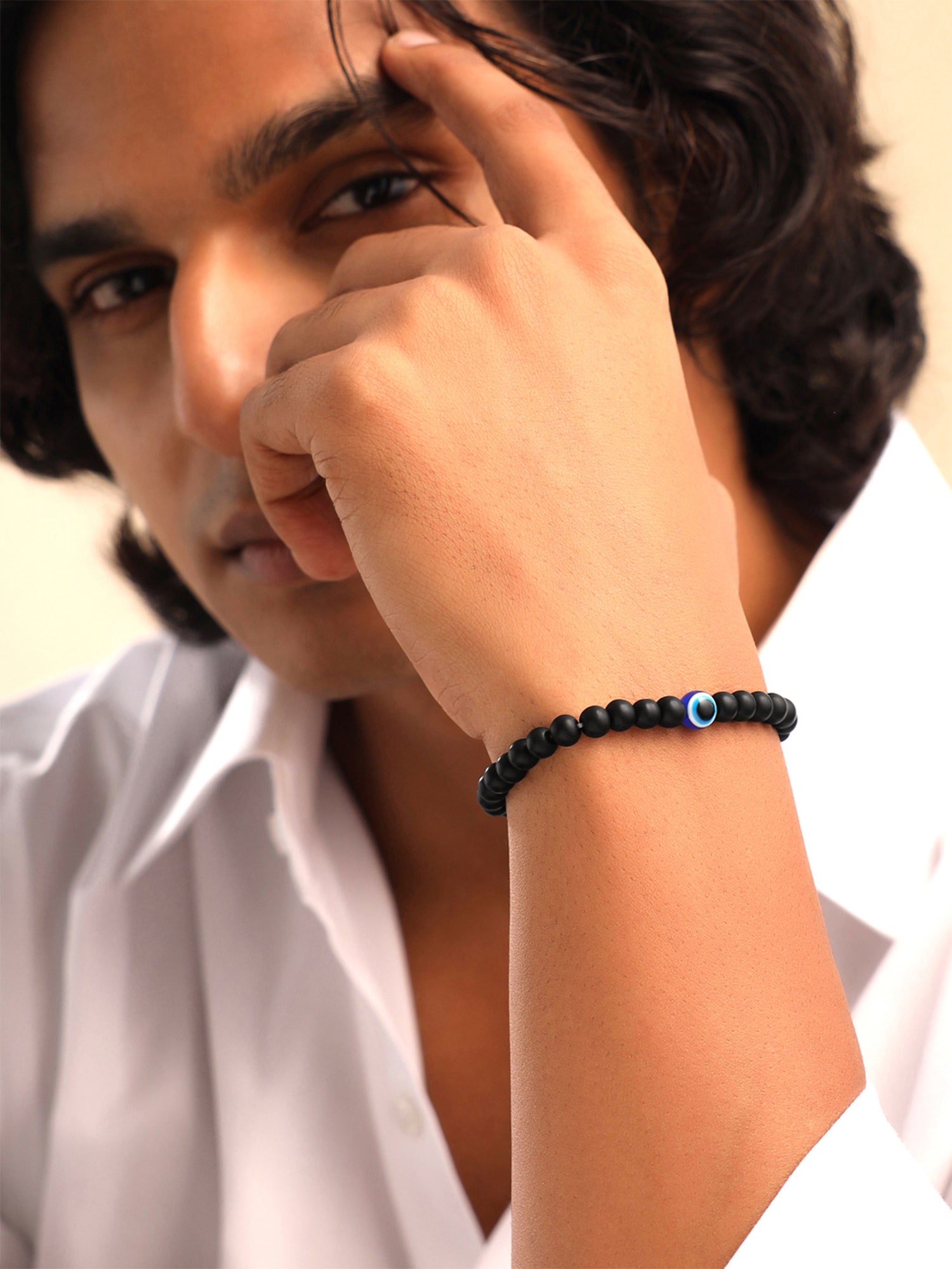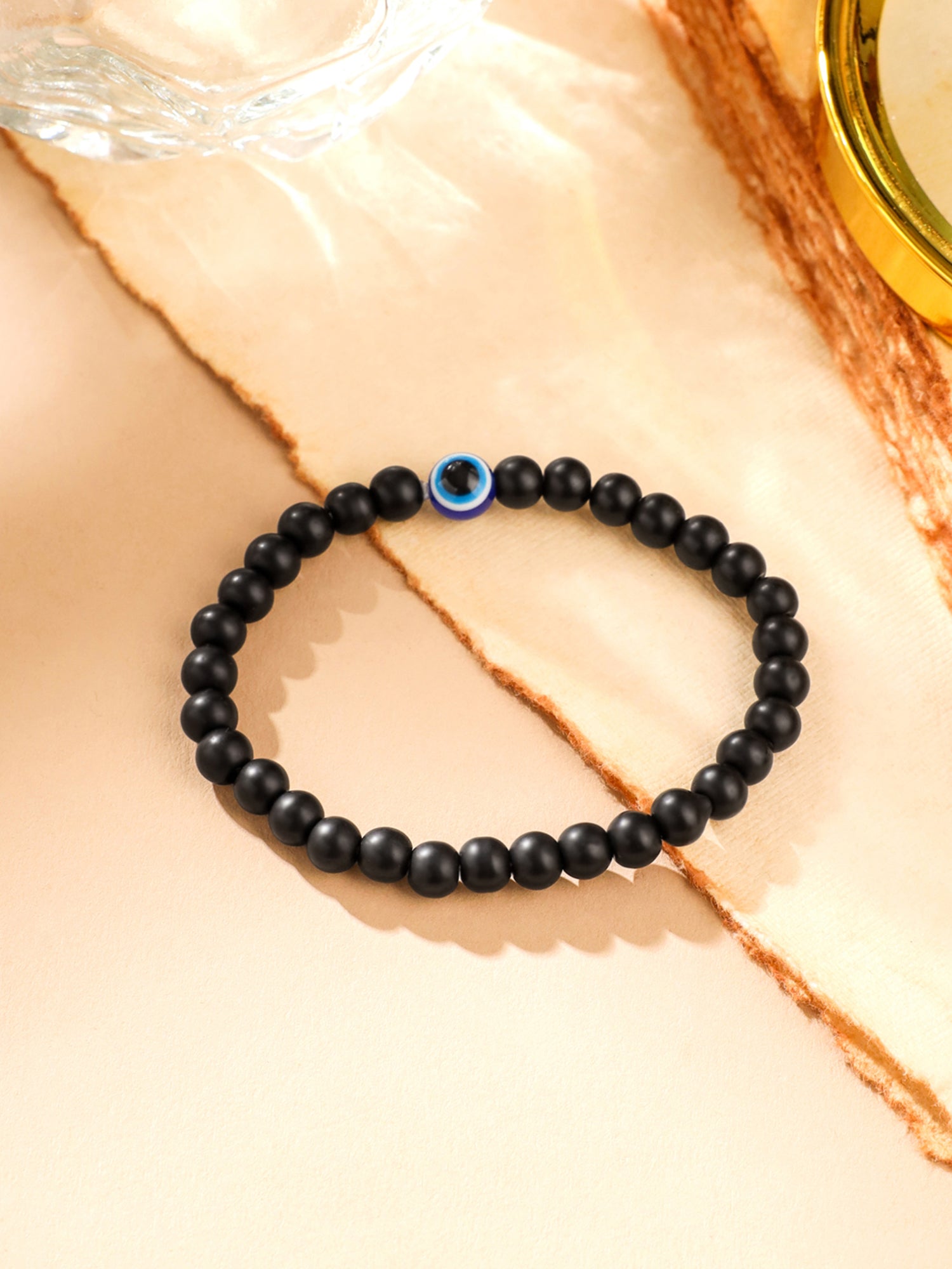 Combo: Men's Bracelets - Lava Rock & Nylon | 2 Pcs | Black Color